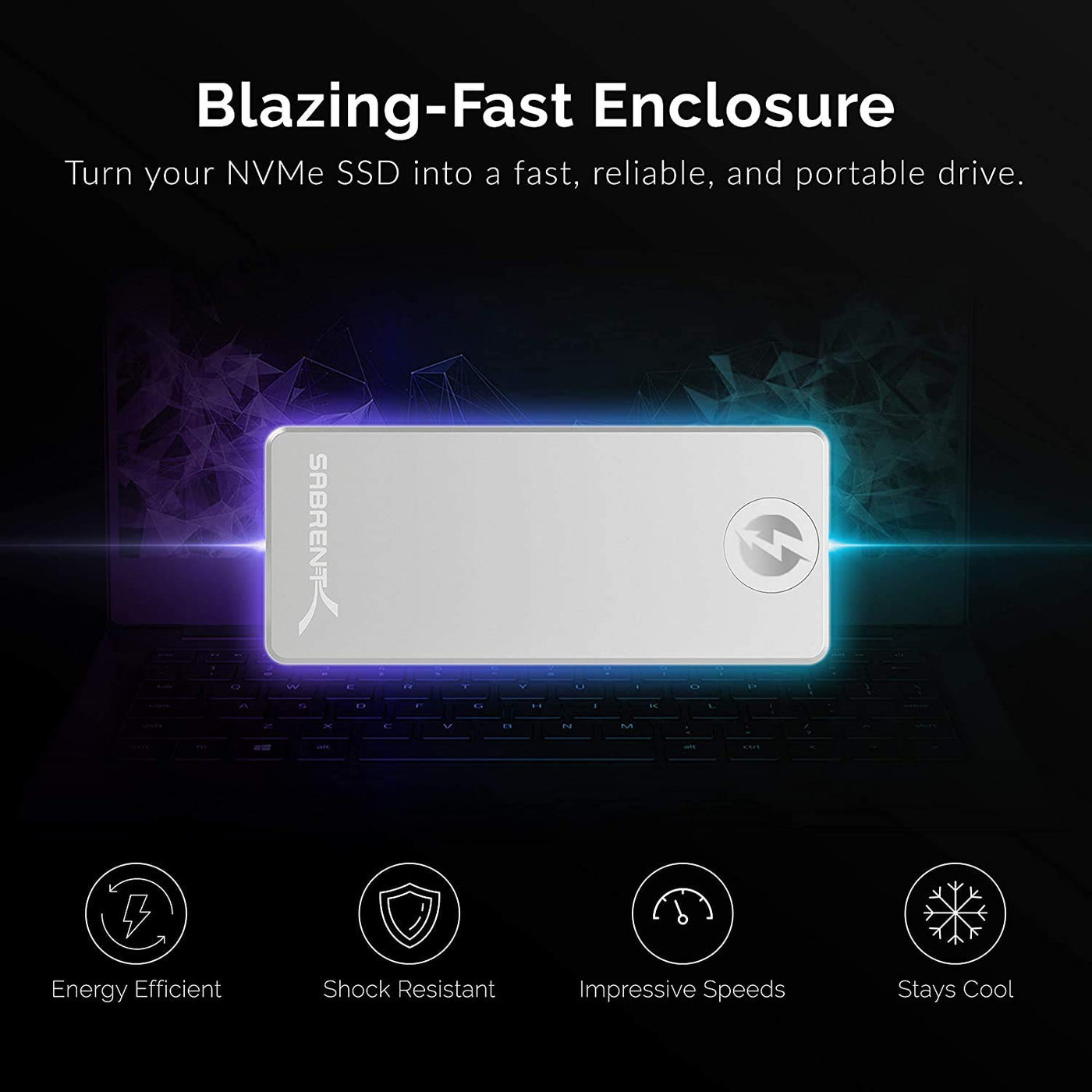 The Sabrent Thunderbolt 3 M.2 Nvme Ssd Tool-Free Solid Aluminum Enclosure Is The Ultimate Combination Of Convenience, Performance, And Reliability! Thunderbolt 3 Technology Enables Amazing Speeds Of Up To 1600 Mb/S. Trust & Reliability: Dont Entrust Your Valuable Data To Devices That Are Only Compatible With Thunderbolt 3. Sabrent Is One Of The Only Manufacturers And Brands Who Are Fully Certified By Intel To Use Thunderbolt 3 Technology In Their Products. Dont Settle For Anything Less Than The Original! Features A Detacheable 20Cm Cable Which Allows For Full Versatility Based On The Task On Hand! Heat Dissipation: Solid Aluminum Construction For Durability And Maximum Heat Dissipation Allows For The Ultimate Combination Of Performance, Reliability, And Extreme Speed. Please Note: Not Compatible With Usb-C Ports. Your Device Must Have A Compatible Thunderbolt 3 Port, Otherwise The Enclosure Will Not Work! Features: Turn Your Nvme Ssd Into A Fast, And Portable Drive. Thunderbolt 3 Transfer Speed Up To 1600 Mb/S. (Actual Performance Will Depend Both On The Speed Of Your Nvme Disk And Your Systems Overall Performance). Solid Aluminum Construction For Durability And Maximum Heat Dissipation. M.2 Size Compatibility: 80Mm (2280). Integrated Temperature And Health Monitoring System. Internal Conversion Layer Support For 1 X Thunderbolt 3 (20 Gbps). Internal Conversion Layer Support For 1 X M.2 Nvme Pcie Gen 3 X2. Plug And Play. No Drivers And No External Power Supply Needed. System Requirements: Windows / Mac / Linux. Package Contents: Thunderbolt 3 Nvme Ssd Tool-Free Enclosure. Thunderbolt 3 Cable. Quick User Guide.