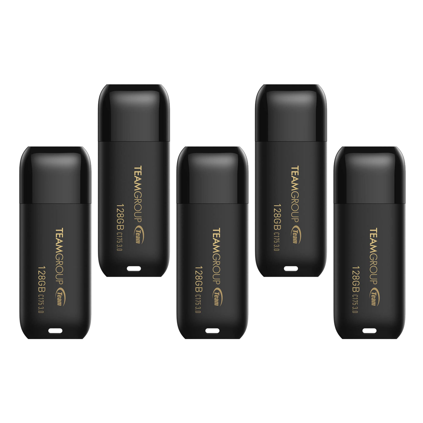 Teamgroup C175 128Gb 5 Pack Usb 3.2 Gen 1 (Usb 3.1/3.0) Read 100Mb/S Flash Thumb Drive, External Data Storage Memory Stick Compatible With Computer/Laptop Matte Black Tc1753128Gb22