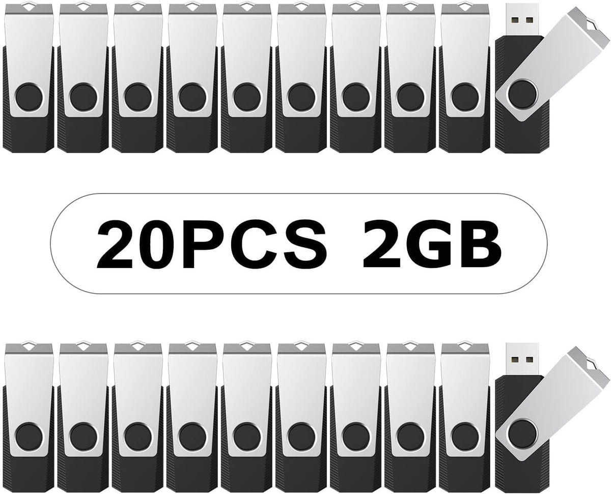 Topesel 20Pcs 2Gb Bulk Usb 2.0 Flash Drive Swivel Memory Stick Thumb Drives Pen Drive (2G, 20 Pack, Black)