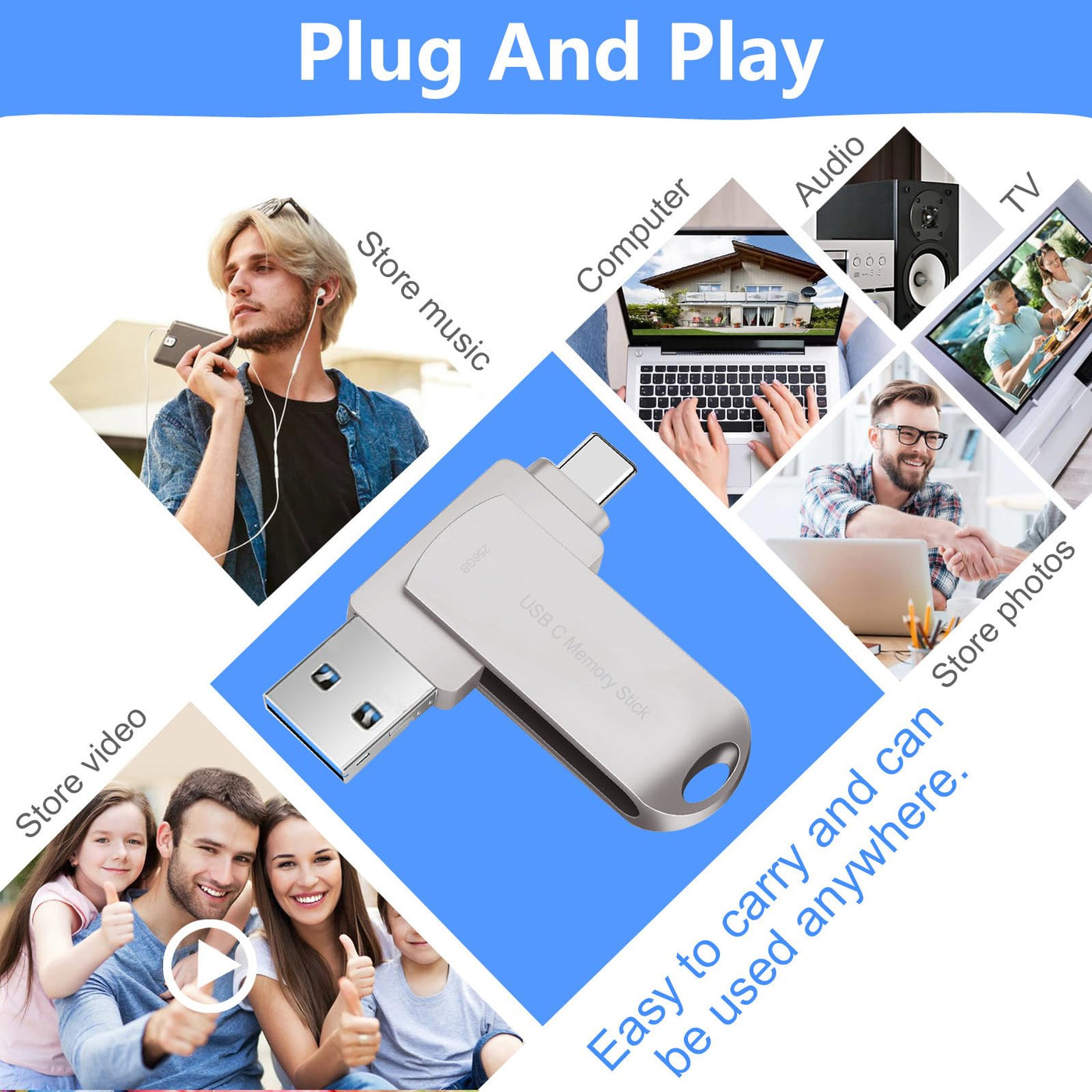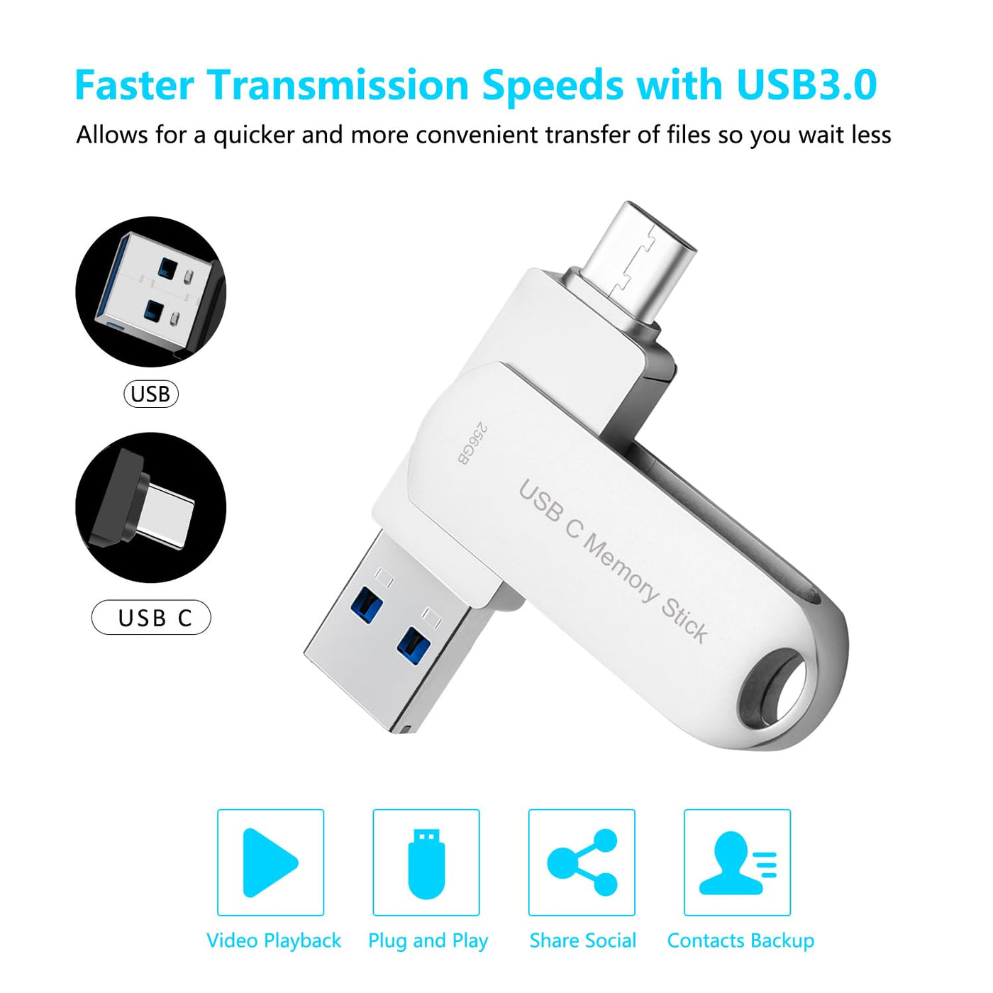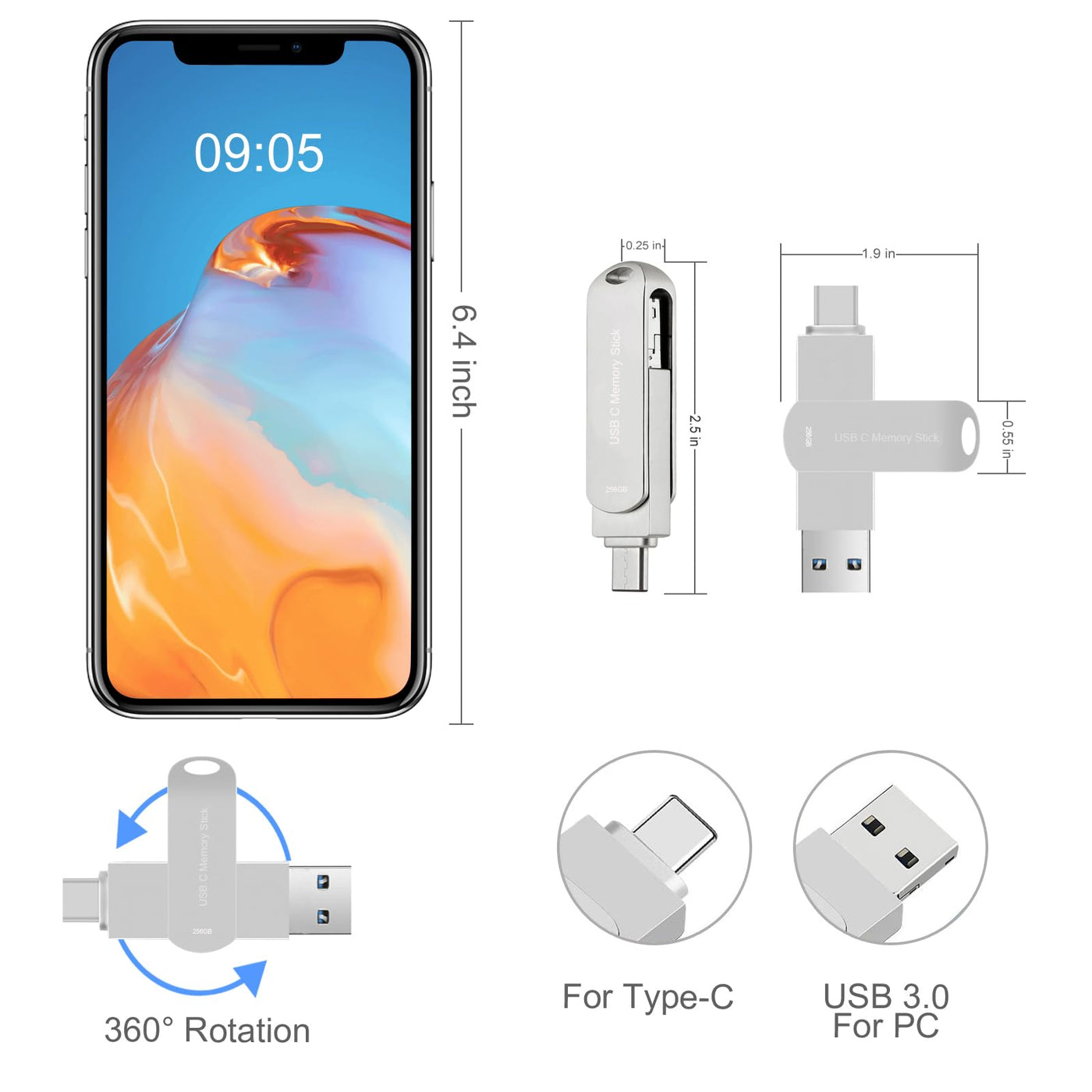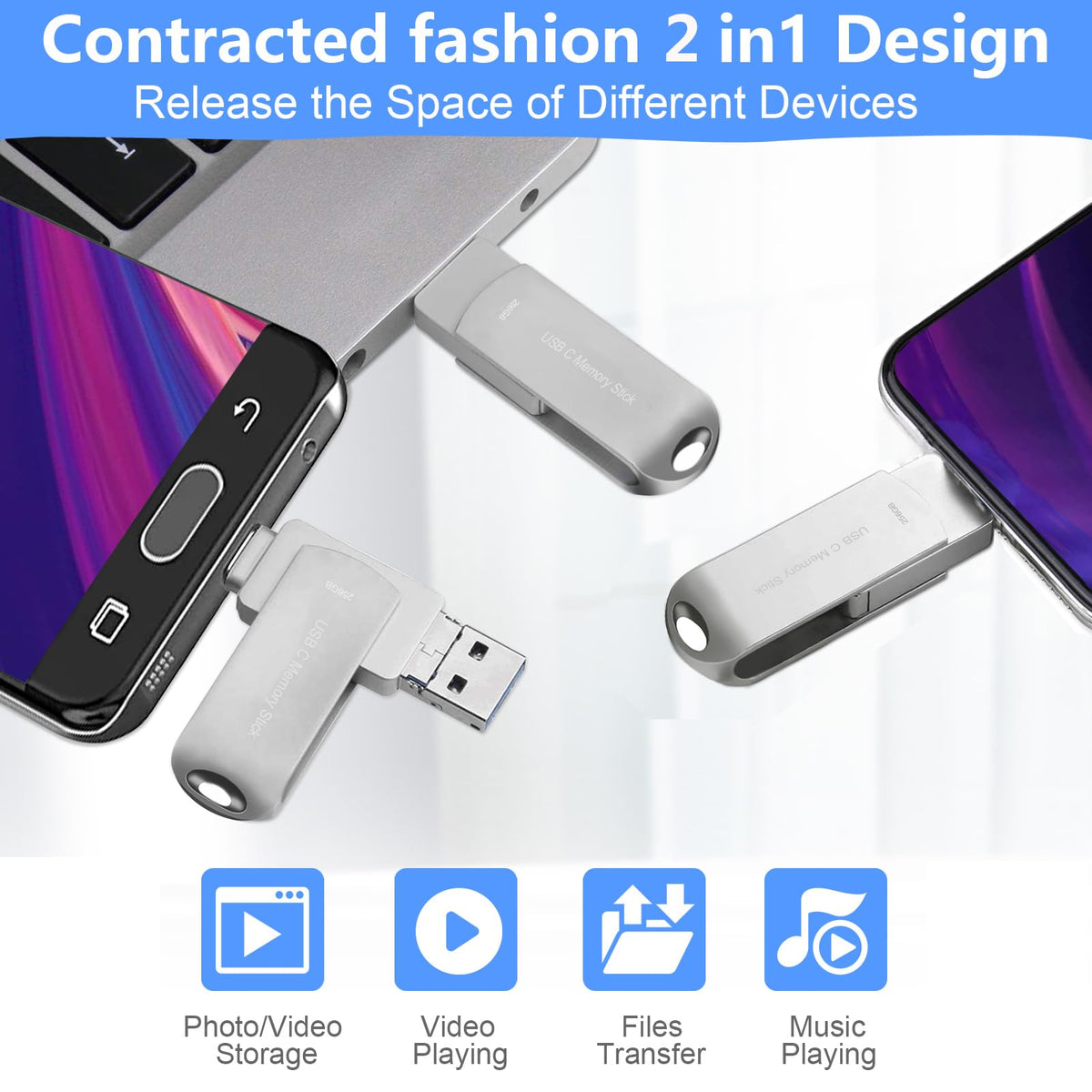 Usb C Thumb Drive 256Gb For Phone, Hupins 170Mb/S High Speed Usb Flash Drive Photo Storage, Multi Port Memory Stick Compatible A