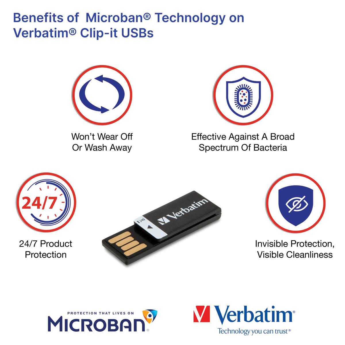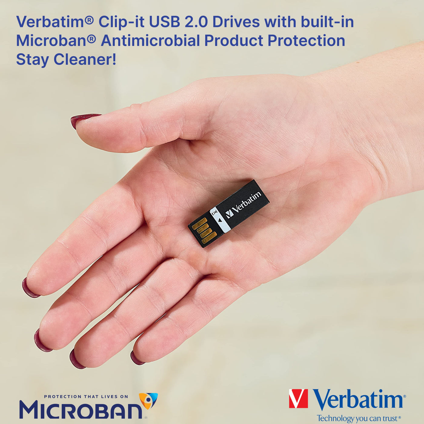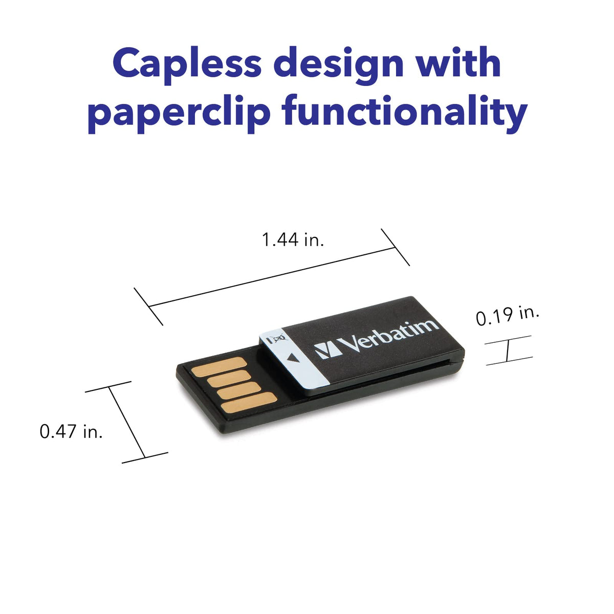 Verbatim 8Gb Clip It Usb 2.0 Flash Drive Cap Less Thumb Drive With Microban Antimicrobial Product Protection Resistant To Water,