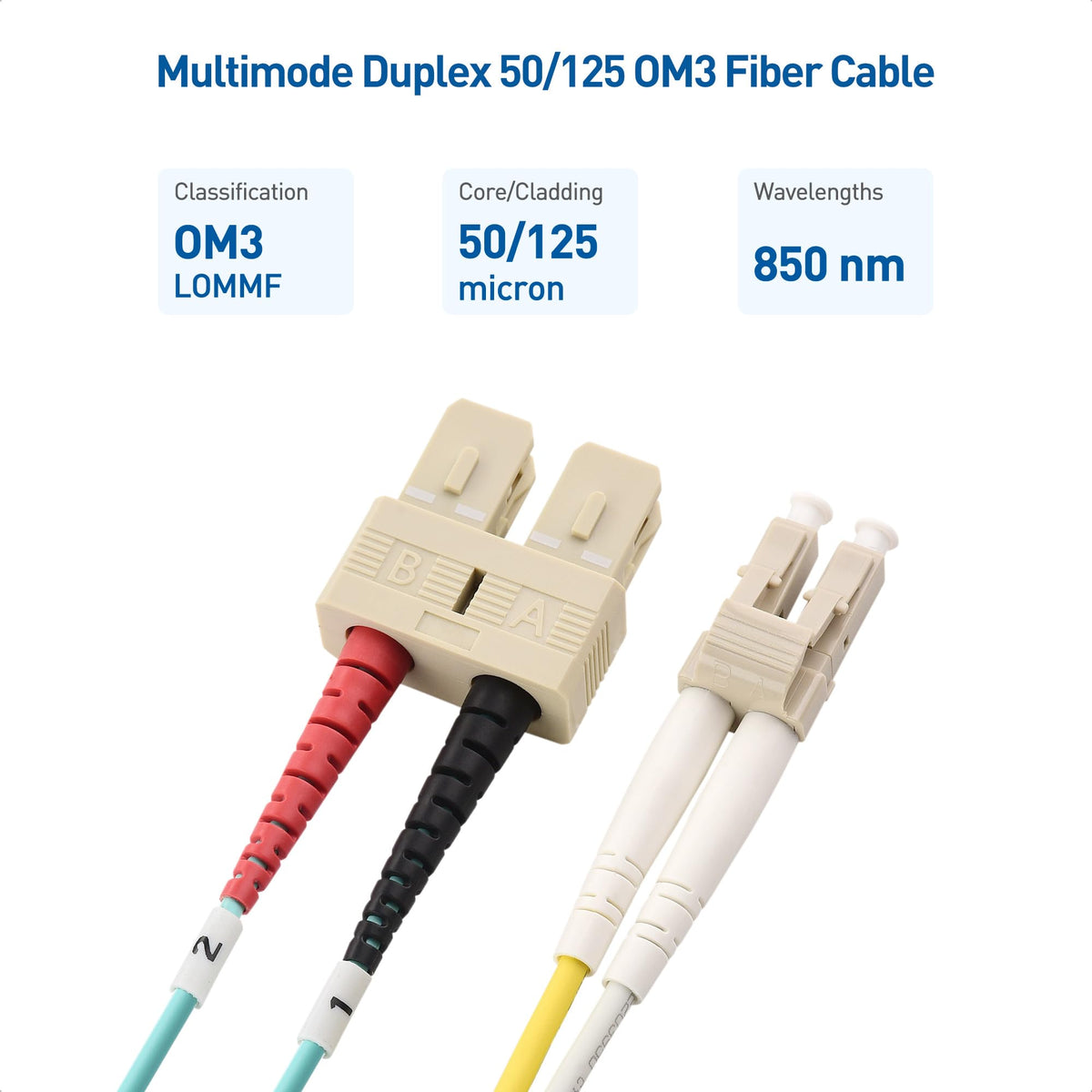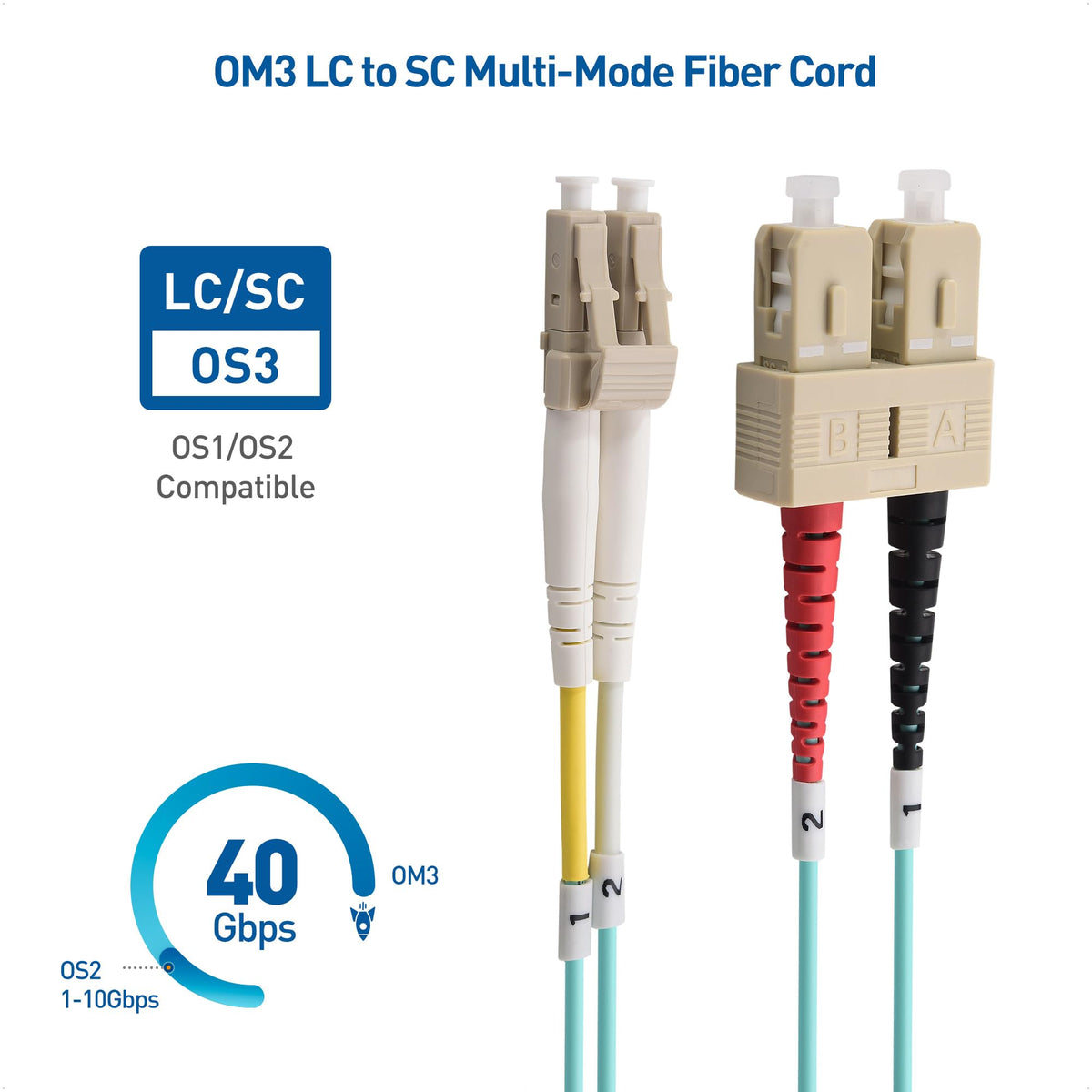 Cable Matters 10Gb 40Gb Ofnp Plenum Rated Multimode Duplex 50/125 Om3 Fiber Cable (Lc To Sc Fiber Optic Cable, Sc To Lc Fiber Pa