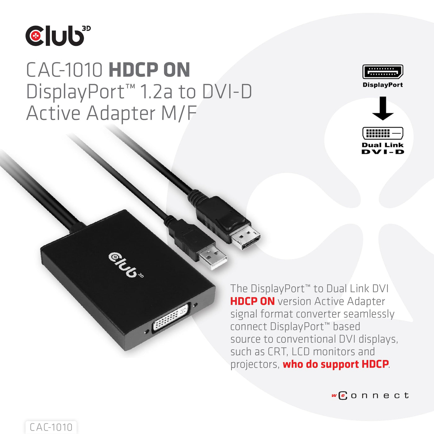 Club 3D Cac 1010 Displayport To Dvi Dual Link Dvi D Active Adapter For Your Monitordisplay Usb A Powered 2560X1600 Resolutio