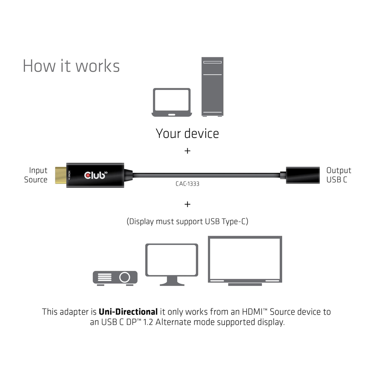 Club 3D Cac-1333 Hdmi 2.0 To Usb Type C 4K60Hz M/F Active Adapter
