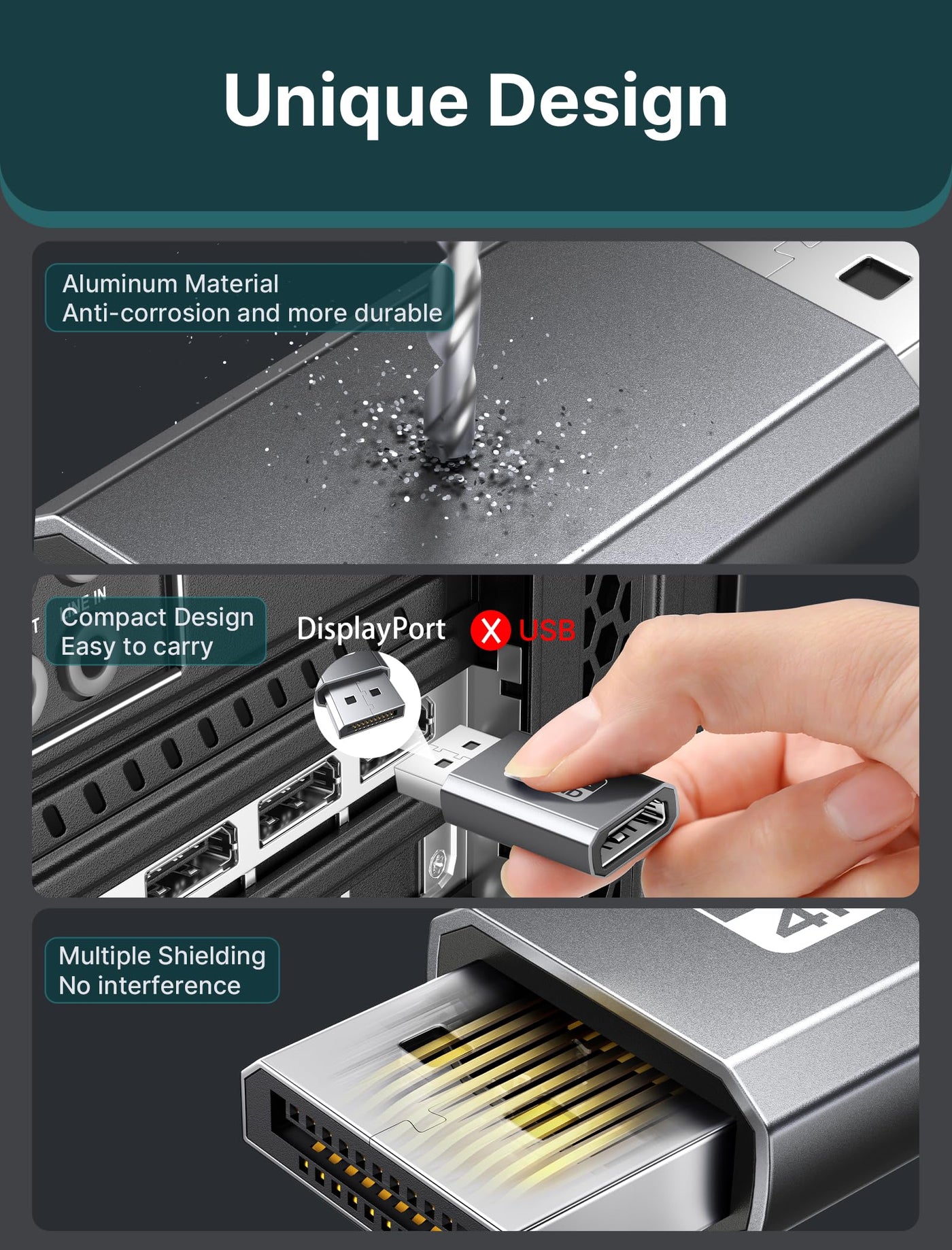 Jsaux 4K Displayport To Hdmi Adapter 2 Pack, Dp Pc To Hdmi Monitor Converter Video Uhd 2K@120Hz,4K@30 Dp To Hdtv Male To Female