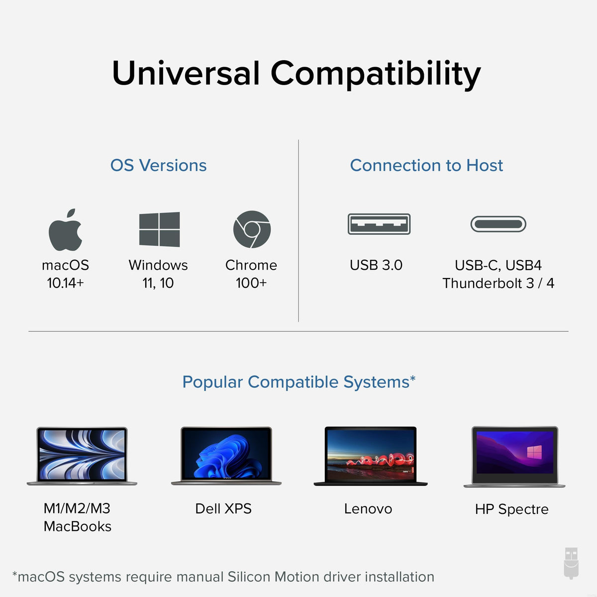 Dual Monitor Adapter: Usb To Hdmi Adapter For Dual Monitors, Each Capable Of Mirrored Or Extended Display With Resolutions Up To 1920X1080 @ 60Hz-All Through A Single Connection Back To The Host | Usb-C Or Usb 3.0 To Hdmi: Featuring A Hybrid 2-In-1 Cable, Easily Connect As A Usb4, Thunderbolt 4, Thunderbolt 3, Usb-C, Or Even A Usb 3.0 To Hdmi Adapter. Because The Connection Adapts To The Port, Youll Never Be Left Looking For An Adapter | Windows, Mac, Or Chromeos Compatibility: Compatible With Windows 10 And Windows 11-Multiple Usb Adapters Can Be Added To Connect Up To 8 Monitors. On Macos 10.14 Or Later-Multiple Adapters Can Be Added To Connect Up To 4 Monitors. On Chromeos Can Connect Up To 2 Monitors. Its Worth Noting That Driver Installation Is Required | Expand Your Screen Count: Extend Your Video Signal Across Multiple Monitors And Dedicate Screens To Online Meetings, Presentation, Spreadsheets, Web Browsing, And More | Enhance Your Productivity: Effortlessly Manage Multiple Tasks Simultaneously With The Ability To Expand Your Screen Count And Optimize Your Workflow