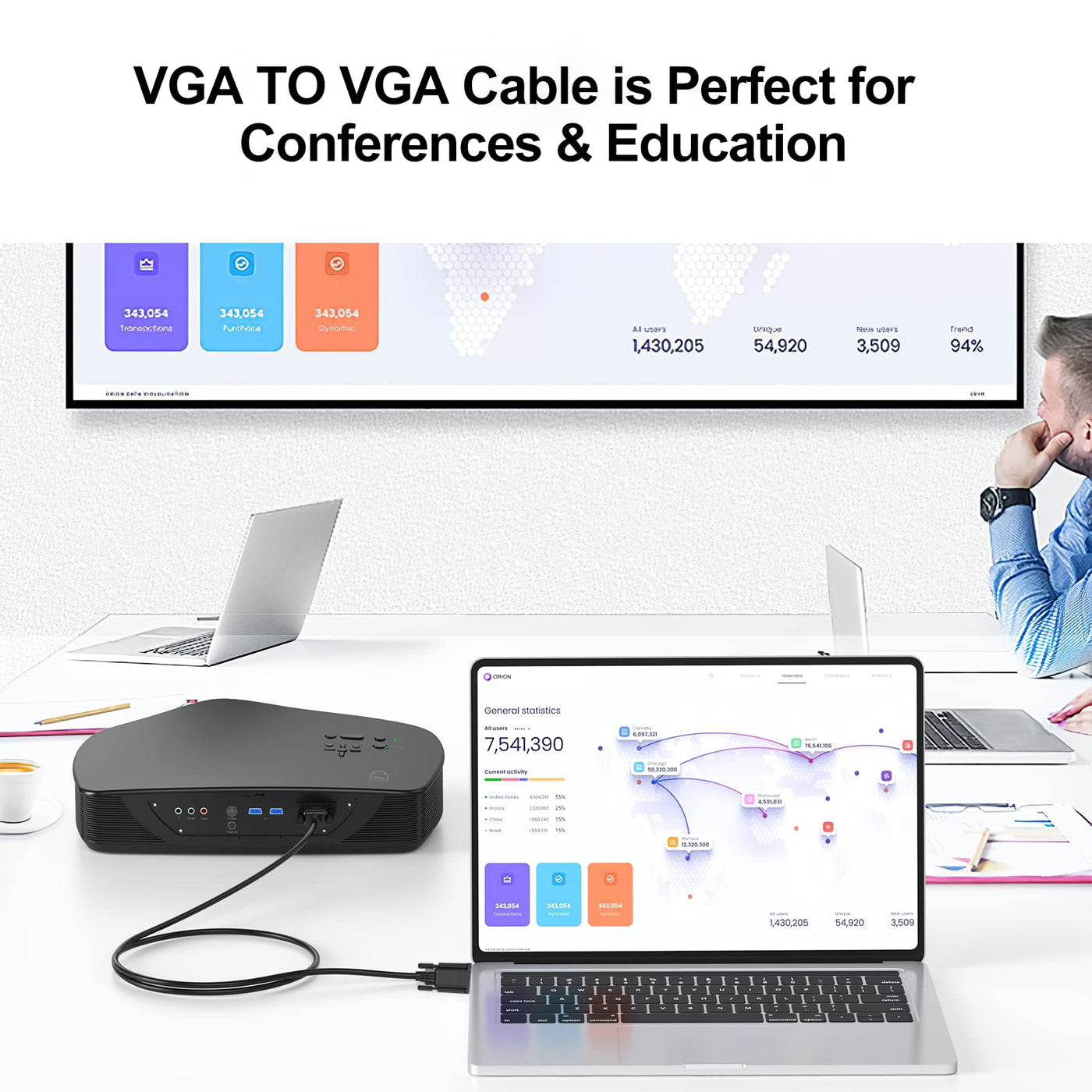 Q: Can I use this VGA Cable for long-distance connections?A: While the VGA Cable is 10 feet long, it's important to consider that longer cable lengths can sometimes affect signal quality. However, this cable is designed to maintain high performance over its length.
