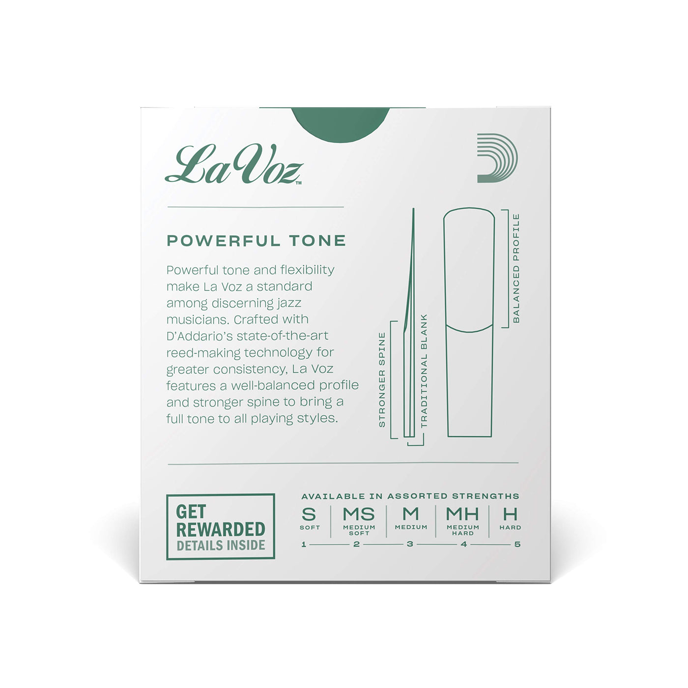 From The Manufacturerla Voz Reeds In Medium-Soft Strength Feature A Traditional Tip Thickness Combined With A Stronger Spine And An Unfiled Cut For More Resistance And A Full Tone.Crafted From Premium Cane For Consistent Response And Playability, La Voz Is The Choice Of Professional Saxophonists. Unfiled For A Deep, Powerful Tone, La Voz Is The Reed Of Choice For Many Of The Worlds Top Jazz Musicians. Available For Saxophone And Clarinet In Boxes Of Ten Reeds.Since The Acquisition Of Rico By Daddario & Co., Rico Has Strengthened Its Position As The Global Leader In Woodwind Reeds And Accessories. Ricos State-Of-The-Art Reed Research Center In Southern California Employs A Collaboration Of Agronomists, Scientists, And Musicians To Produce Top-Quality Reeds, Including Rico Reserve Premium Reeds For Clarinet And Saxophone. Rico Reeds Are Designed To Benefit All Levels Of Musicians, From The Beginner To The Seasoned Professional. Many Of The Worlds Finest Woodwind Players Perform With Rico Reeds, Such As Mark Nuccio, Jerry Bergonzi, Chris Potter, Benny Golson, Ernie Watts, Bob Sheppard, Henri Bok, Richie Hawley, Eric Alexander, And Many More.