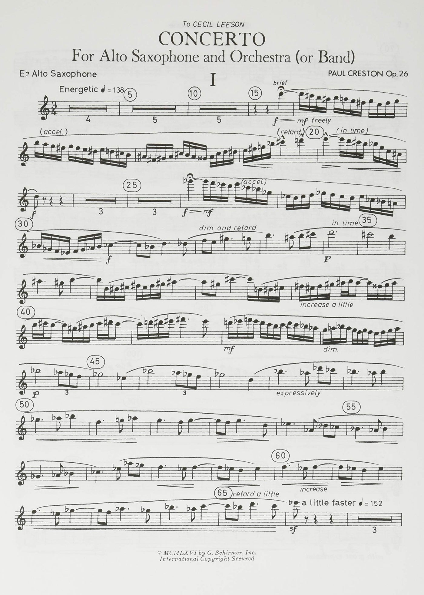 -Spiral Coil-Bound For Easy Page Turn And Transitions From Publisher G. Schirmer, Inc.-Series: Woodwind Solo, Ensemble: Orchestra-Set Of Performance Parts, Composed By Paul Creston-Standard Piece Of The Saxophone Repertoire For The Advanced Level Pl.
