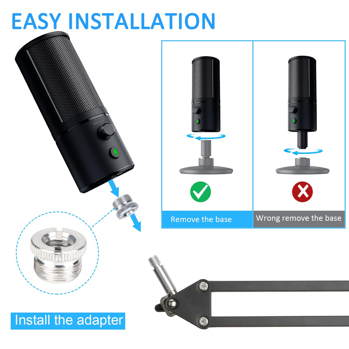 Do You Still Have Your Hands Tied When Using The Microphone? Is Your Workspace Occupied By A Microphone Stand? Come And Buy Our All-In-One Mic Stand Set! Free Your Hands And Increase Your Working Space With Sunmon Microphone Stand . It Is Also Easy To Install And Easy To Use. And Flexible, You Can Easily Move It To Adjust The Mic Whenever Needed And Have It In Just The Right Place. Our Mic Stand Has Good Stability And Strong Bearing Capacity. The Microphone Foam Cover Is Designed For Razer Seiren X. It 'S A Perfect Match. It Can Not Only Effectively Filter Out The Harsh ''P '', ''T '', ''B '' Sounds And The Sound Of Wind And Other Unwanted Background Noise. Make Your Voice Crisp, Clean, High Definition. At The Same Time, Cable Sleeve Can Hide The Messy Usb Cable In The Sleeve From Sight. It Makes Your Living And Working Space Look More Organized, Say Goodbye To A Stack Of Messy Cables. Stick Out The Cable Where Needed 'The Pre-Made Hole ' Allows You To Have Cords Split Out Where Needed. You Will Install The Two Cable Steeve In The Two Positions Of The Mic Stand. Note:You Can Also Refer To The Pictures Of Installation Steps Above. Specification Stand Extended: Up To 26.8 '' Max Load: 3 Pound (1.4 Kg) Structure: Fold-Able, Stretched, 180-Degree Rotation Wide Of The Clip: 1.8 '' (4.5Cm) Package Included 1 X Seiren X Microphone Windscreen 1 X Microphone Scissor Arm Stand 2 X Cable Sleeve Note 1)Please Confirm The Thickness Of Your Workbench Before Purchasing. 2)No Microphone Included