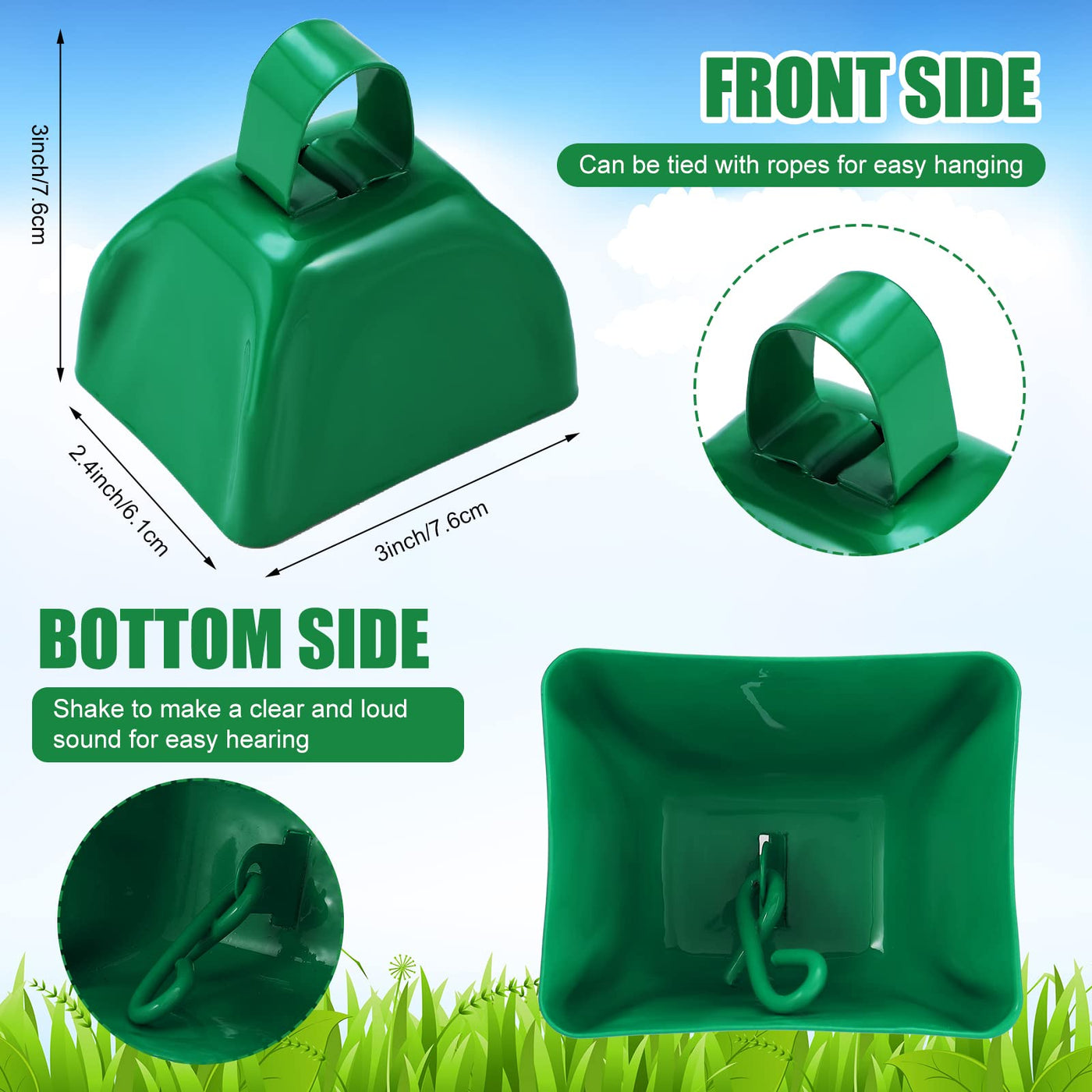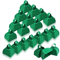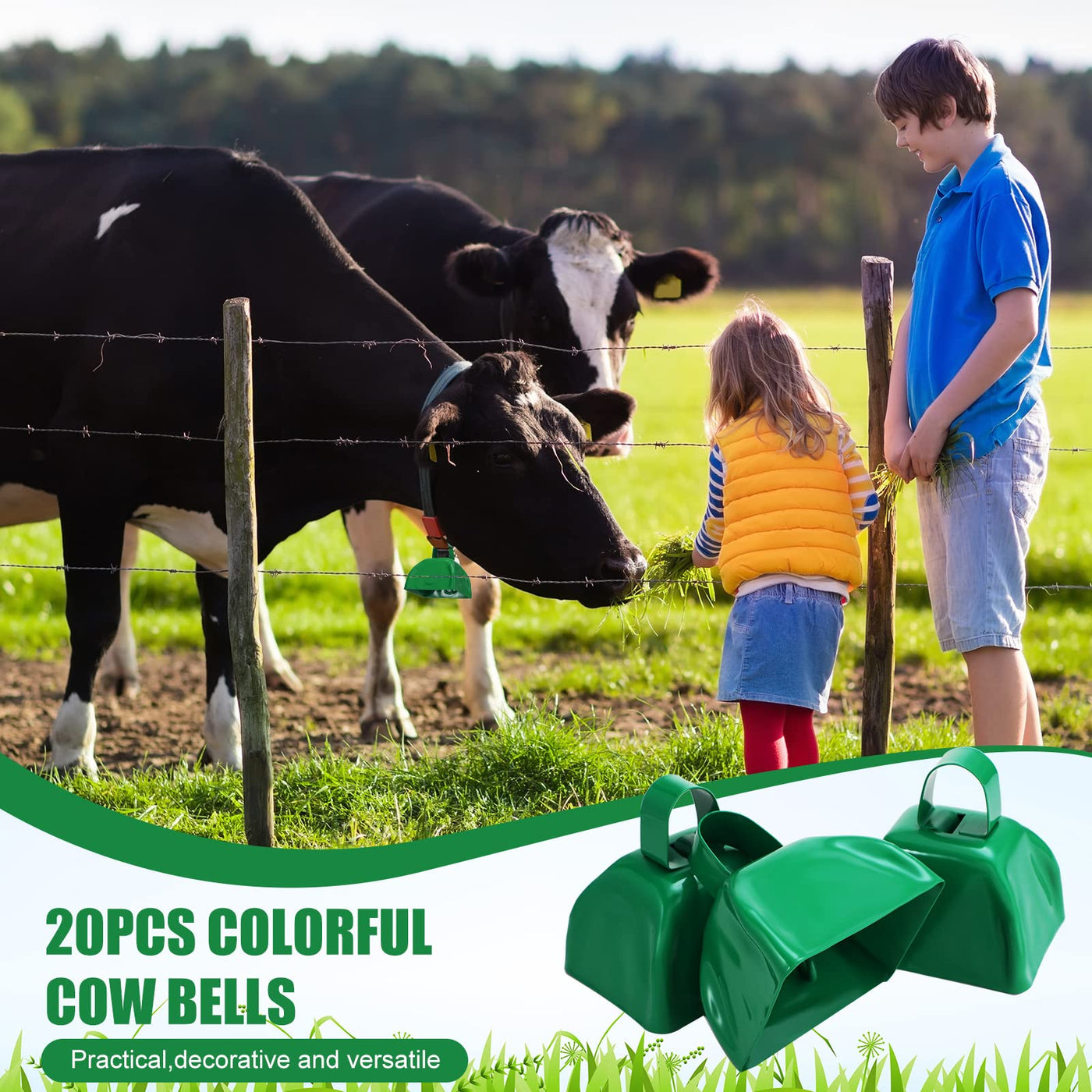 20 Pieces Metal Cowbells For Sporting Events 3 Inch Cow Bells Noise Makers Green Cowbell With Handle School Hand Percussion Cowbells For Weddings Football Games Graduation Party Cheering Team Spirit