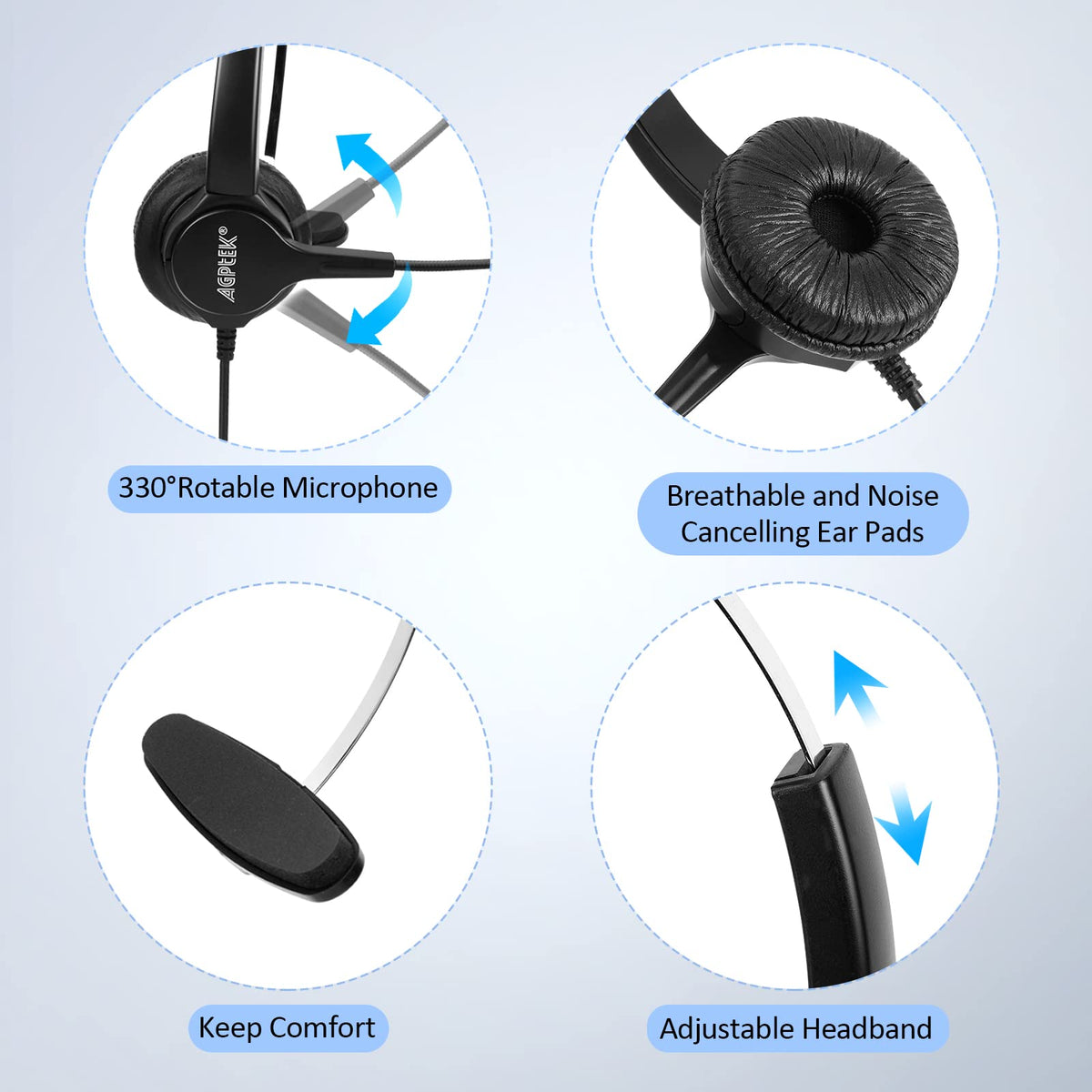 Agptek Hands Free Call Center Noise Cancelling Corded Monaural Headset Usb Headset With Microphone For Pc Headphone With Mic Mir