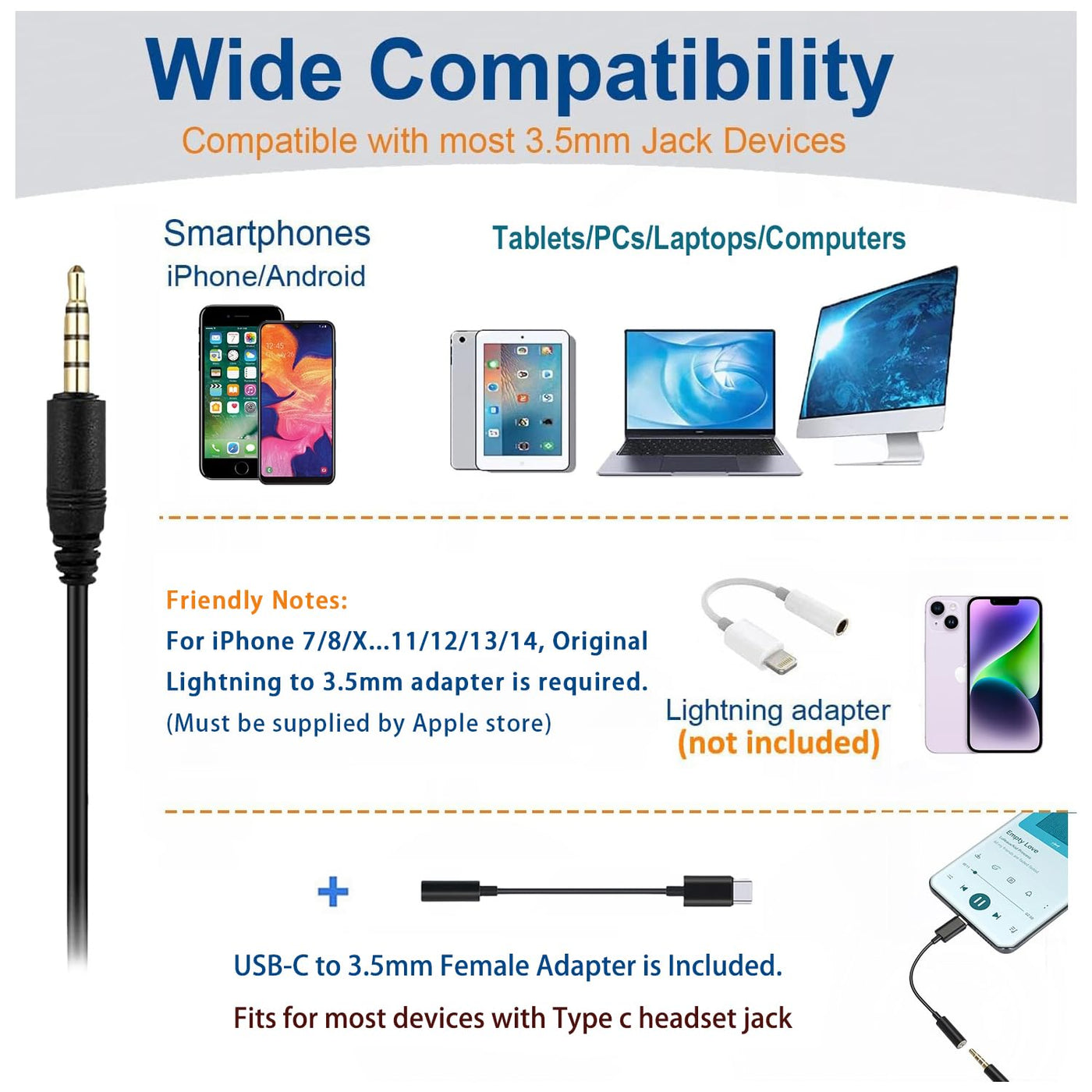 ?3.5Mm Phone Headset?Compatible With Iphone, Samsung, Smartphones And Any Audio Device With A 3.5Mm Jack, For Iphone 7 Or Newer Model, Lightning To 3.5Mm Adapter Is Required (Supplied By Apple) | ?Superb Sound Quality?Wideband Audio Cell Phone Headset With Noise-Canceling Microphone And Enhanced Digital Signal Processing (Dsp) Delivers Clear, Natural, And High-Quality Audio. Acoustic Shock Protection (Asp) Is Included To Safeguard Your Hearing. | ?Comfortable Fit?Arama Wired Headset Have Been Rigorously Tested For Ergonomic Design To Provide All-Day Comfort.Ultra-Soft, Large Protein Earpads And Adjustable Headband Distributes Weight Evenly. | Binaural Headset For An Immersive Audio Experience, Professional Volume Control And On/Off Answer Button Built-In. Comes With 3.5Mm Universal Headset Adapter, Provides A Better Compatibility For Both Apple And Samsung, Ios And Android Operations. | ?Built To Last?Arama Cell Phone Headset With Precision Design, Quality Plastics, Durable And Advanced. 5.3Ft Long Cord Easily Provides Flexible Mobility.