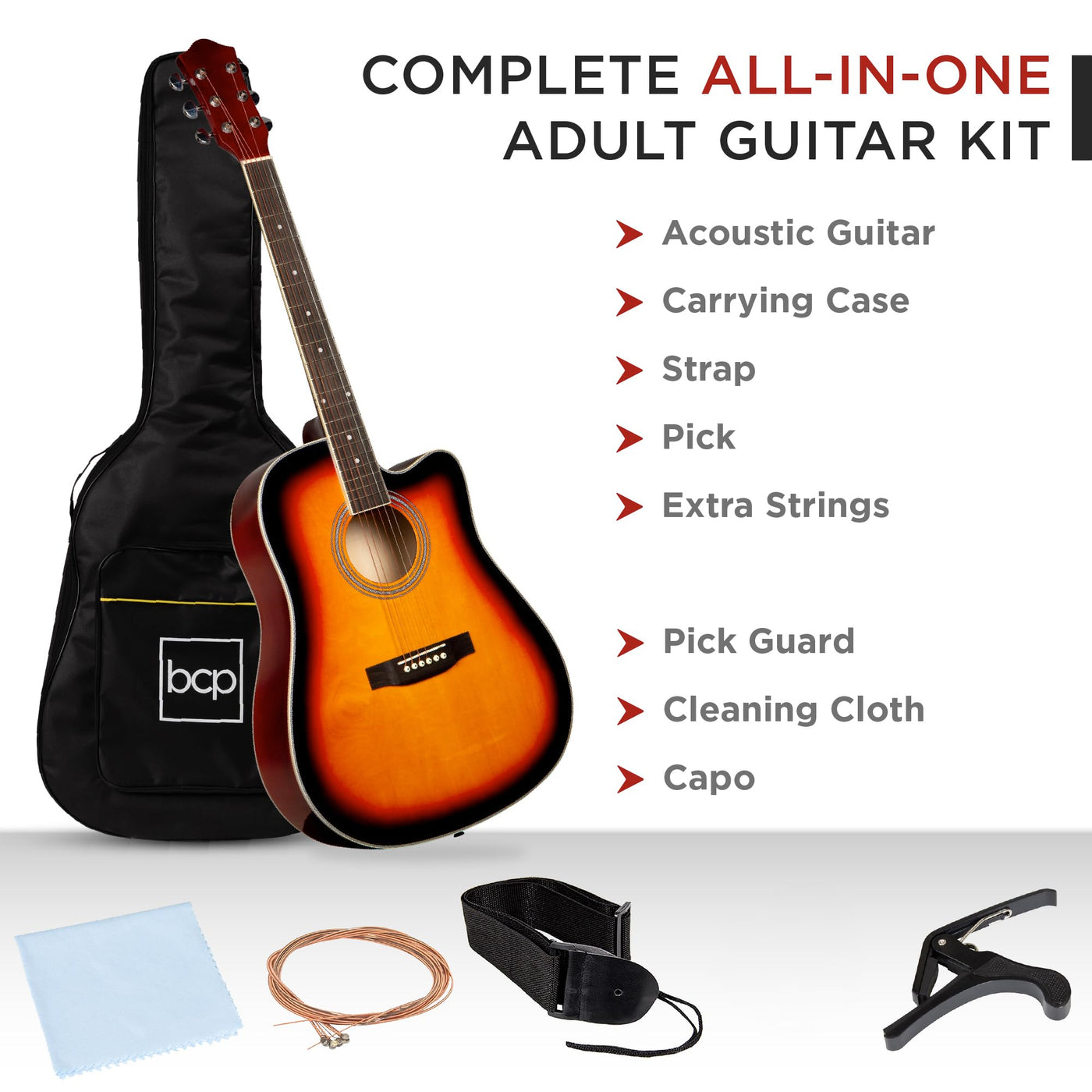 Best Choice Products 41In Beginner Acoustic Guitar Full Size All Wood Cutaway Guitar Starter Set Bundle With Case, Strap, Capo,