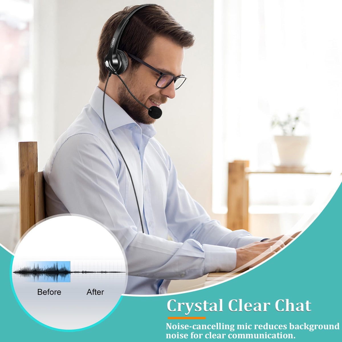 Callez 3.5Mm Headset With Microphone Noise Cancelling For Cell Phone Pc Laptop, Stereo Computer Headphones For Iphone Samsung Mac Call Center Office Skype, In Line Control, Clear Chat