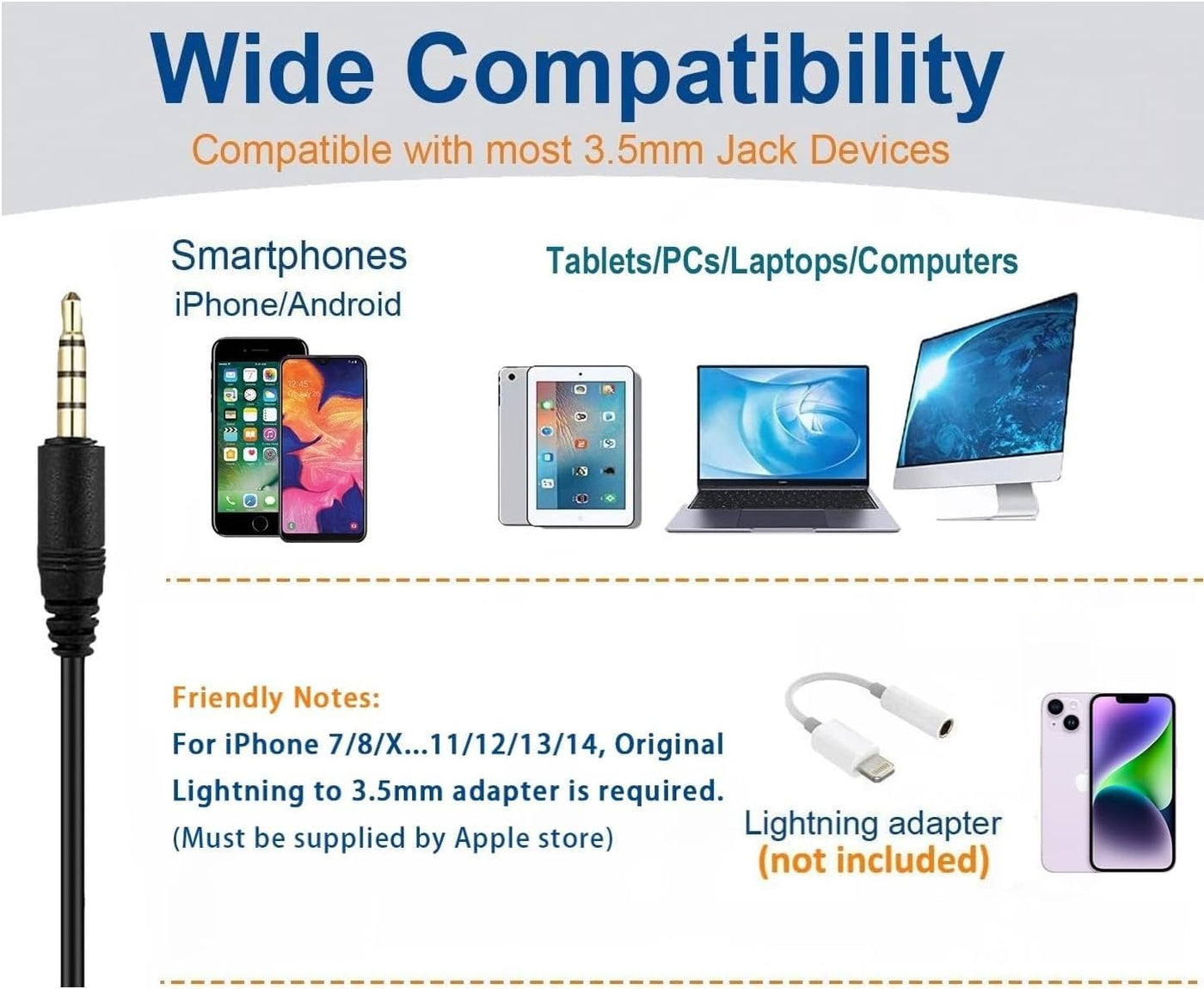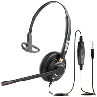 Cell Phone Headset W/Lightweight Secure-Fit Headband, Pro Noise Canceling Mic And In-Line Controls 3.5Mm Headset For Iphone, Samsung, Lg, Htc, Blackberry Mobile Phone And Ipad Tablets (Monaural-3.5Mm)