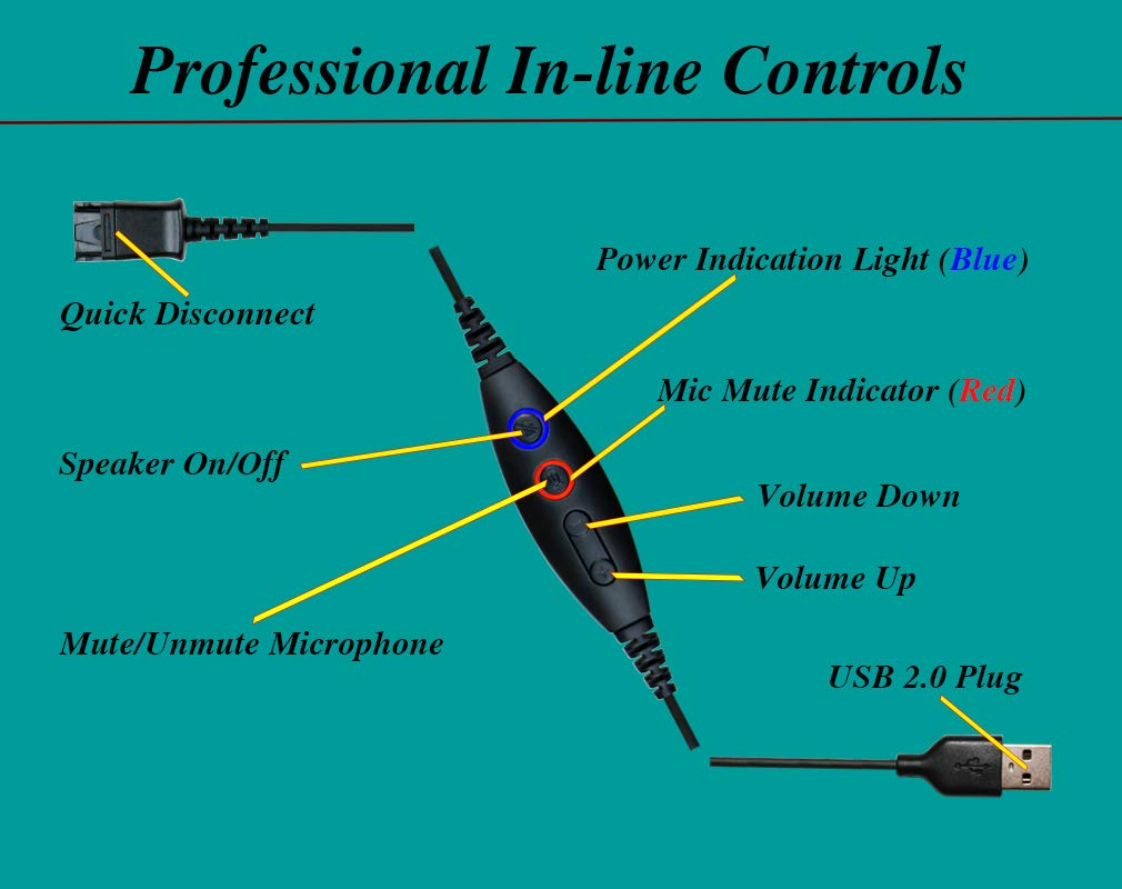 The Phone Headset Qd To Usb Adapter Cable Compatible With Plantronics And Daily Headset Quick Disconnect To Usb Plug Adapter. In-Line Function With Speaker Mute And Unmute, Volume Up And Down & Microphone Mute And Unmute Button. Connect Headset To Computer Laptop And Softphone.