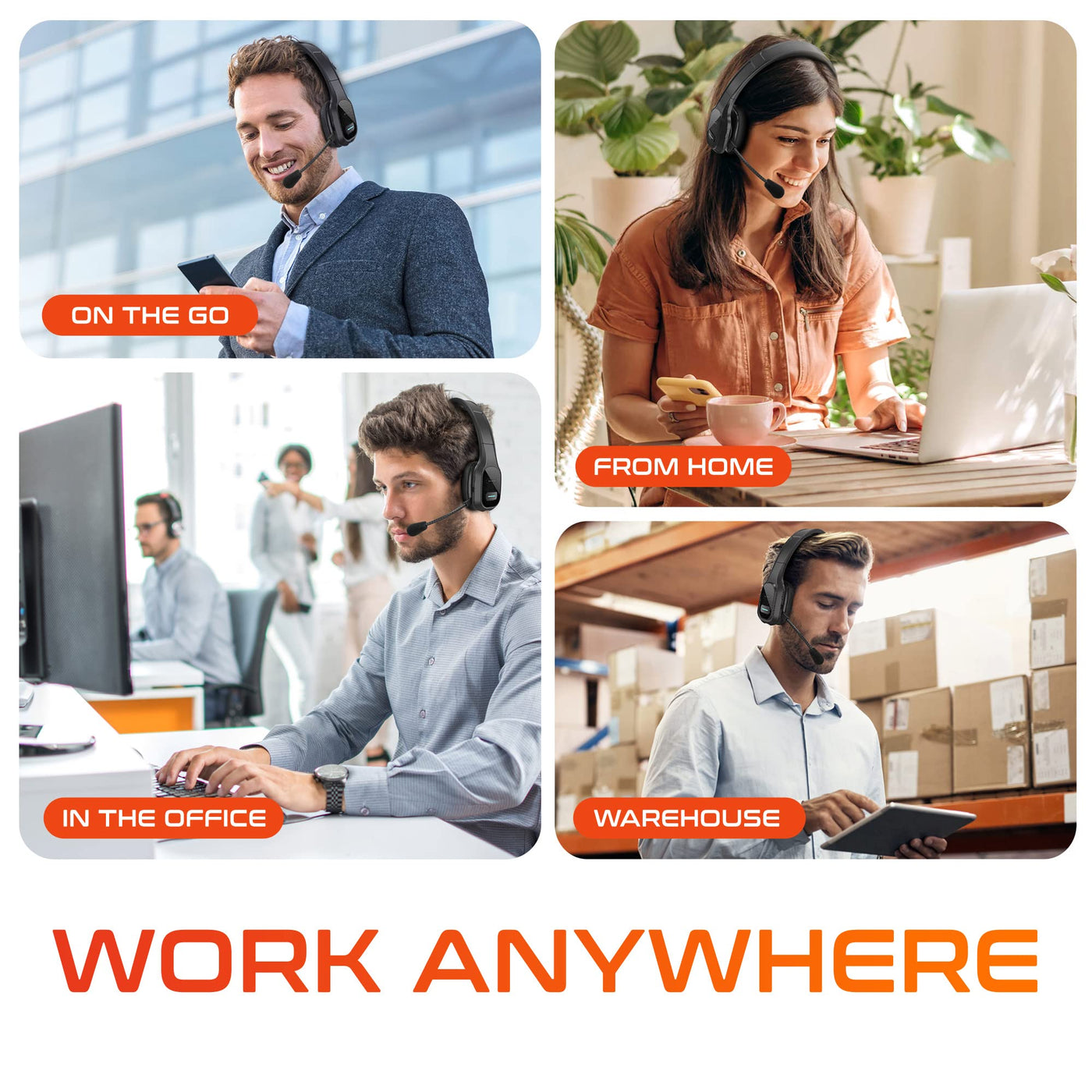 Delton Wireless Computer Headset With Usb Dongle, Trucker Bluetooth Headset With Noise Canceling Mic, 35Hrs Talk Time, Wireless