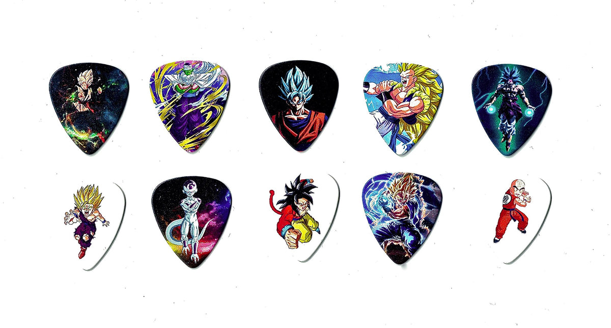 RinTalen Dragon Ball Z Guitar Picks - 10 Medium Multicolor Picks (0.71mm) for DBZ Lovers, Perfect for Musicians and Collectors