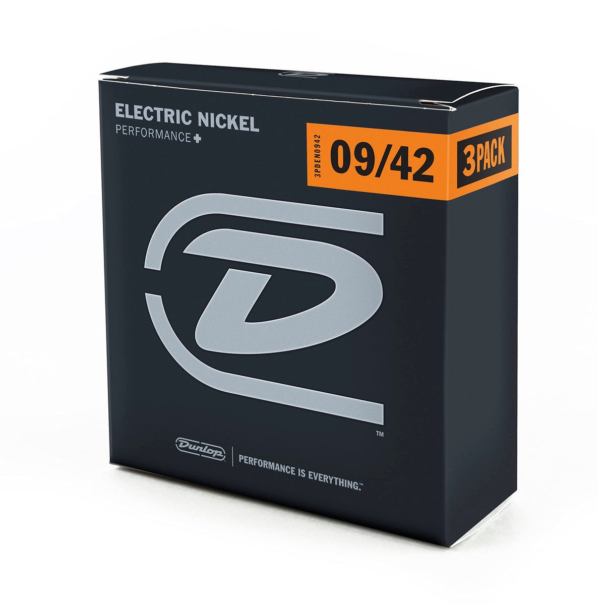 Dunlop 3Pden0942 Nickel Wound Electric Guitar Strings, Light, .009�.042, 3 Sets/Box