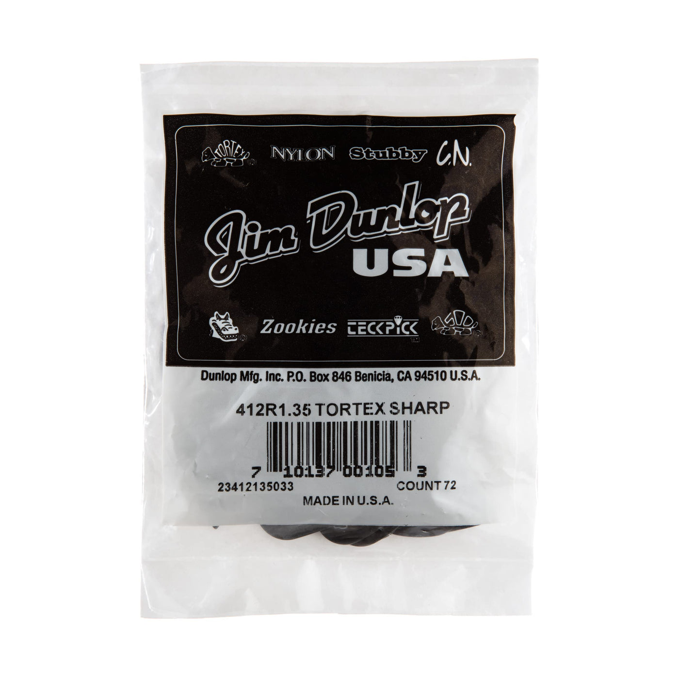 Dunlop 412R135 Tortex Sharp 1.35Mm Extra Heavy Guitar Picks 72 Pack - Black