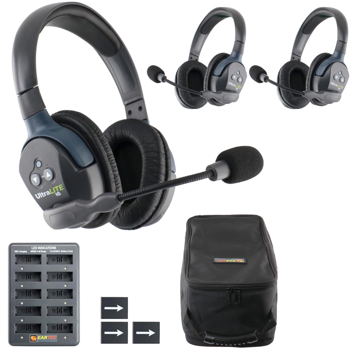 The Eartec Ul3D Is A Professional Full Duplex Intercom For Three People That Need To Communicate And Work With Their Hands. This Compact System Features Three Ultralite Dual Ear Wireless Headsets, One �Main� That Sets The Digital Sequence, And Two �Remote� Headsets. Ultralite Utilize Digital Enhanced Cordless Technology (Dect) To Provide Professional, Simultaneous Wireless Communication Within A Quarter Mile Range.