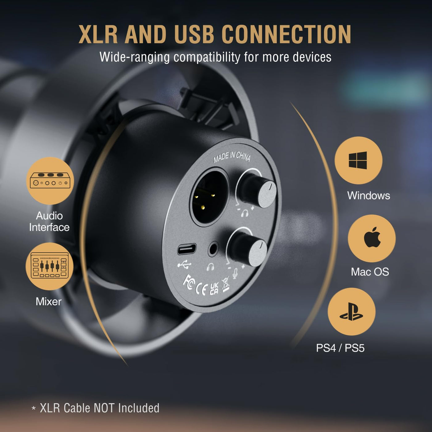 Xlr/Usb Dynamic Recording Microphone Kit For Podcast, Streaming, Studio Mic With Boom Arm Bundle For Home Office