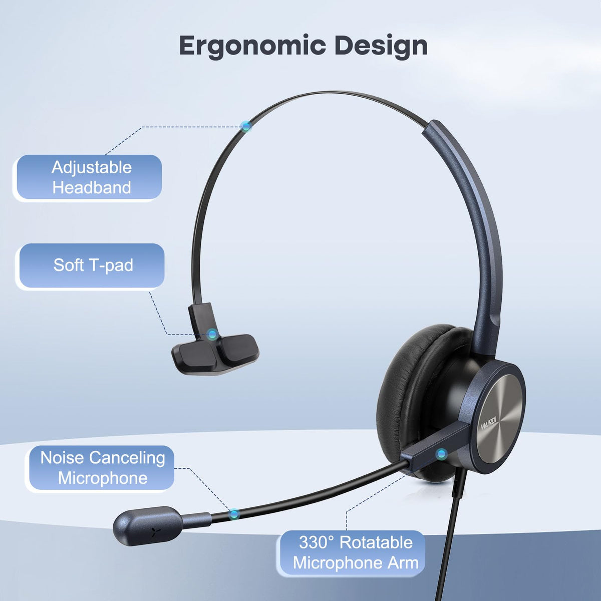 Mairdi Telephone Headset With Rj9 & 3.5Mm Jack For Office Landline Deskphone Cell Phone Pc Laptop, Call Center Phone Headset Wit