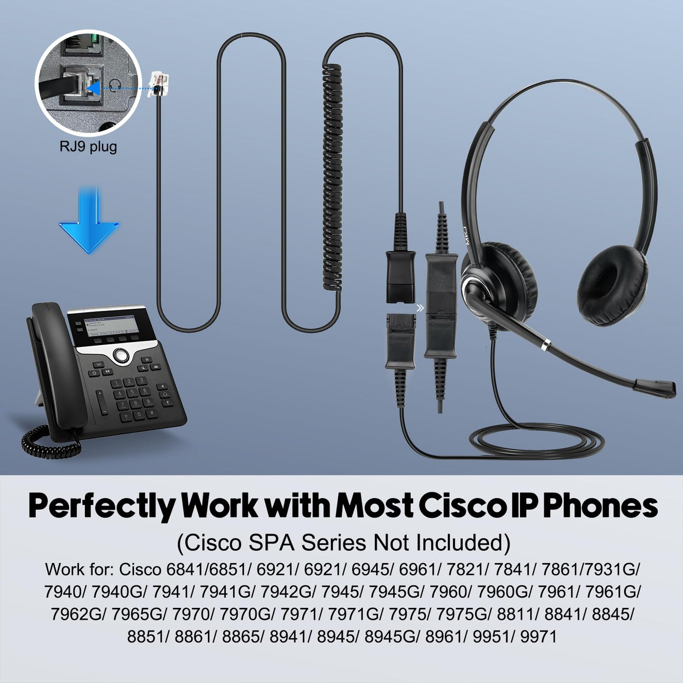 This Telephone Headset For Cisco Phone Use Wideband Audio Technology To Improve Speech Clarity And Feature With Noise Cancelling Microphone To Filter Out Most Background Noise. Its Crystal-Clear Sound Gives Users The Feeling They'Re Having A ''Face To Face'' Communication.Headset Features:? Loud And Clear Sound? Noise Cancelling Microphone For Clearer Voice Transmission? Built-In Acoustic Shock Protection To Protect Hearing? Durable Construction To Withstand The Most Demanding Environments? Ergonomic Design For All Day Comfortpart Of Phones Compatibility:Cisco 6921, 6941, 6945, 6961, 7821, 7841, 7861, 7931G, 7940, 7940G, 7941, 7941G, 7942G, 7945, 7945G, 7960, 7960G, 7961, 7961G, 7962G, 7965G, 7970, 7970G, 7971G, 7975G, 7985G, 8811, 8841, 8845, 8851, 8861, 8865 And 8900, 8941, 8945, 8961, 9951, 9971