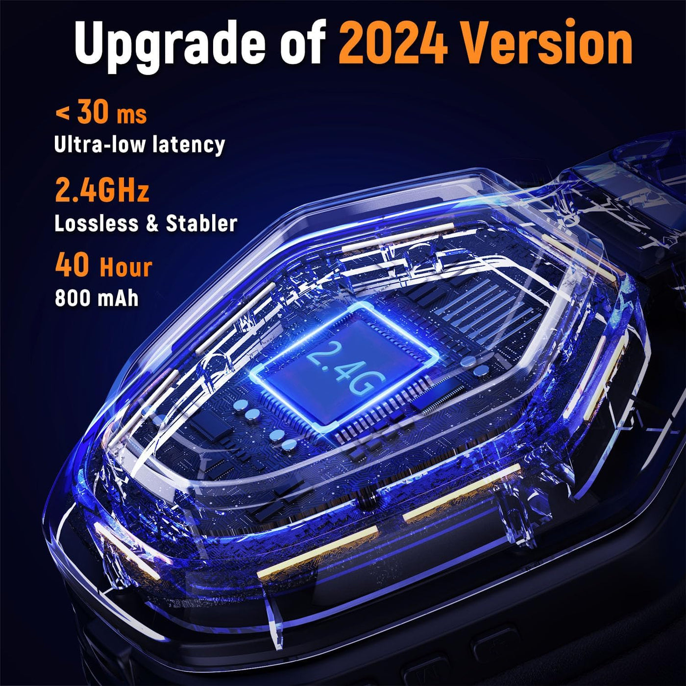 Amazing Stable Connection-Quick Access to Games: Enjoy real-time gaming audio with ultra-low latency, boasting less than 30ms delay. This wireless gaming headset allows for smoother operations, giving you a competitive edge and an immersive, lag-free gaming experience.