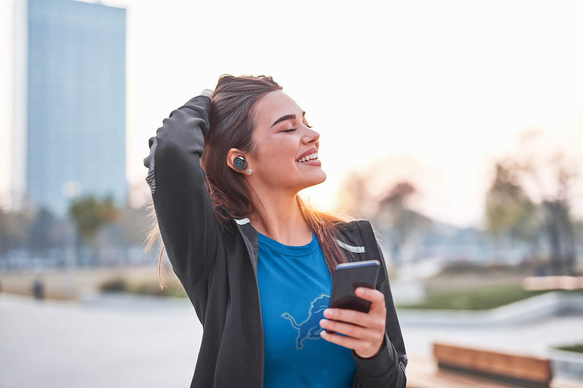 Q: Are these earbuds suitable for sports and workouts?A: Yes, the NFL Detroit Lions True Wireless Earbuds are designed for an active lifestyle, offering a secure fit that makes them ideal for sports and workouts.