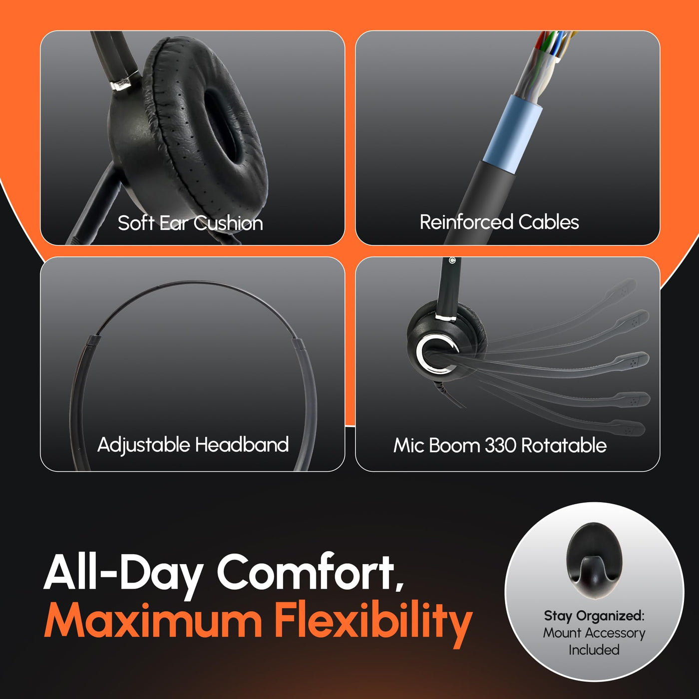 Spracht Zum Rj9 Dual Ear Headset With Noise Canceling Microphone For Desk Phones | Compatible With Desk Phones | Not For Computers, Smartphones | Wired Headphones With Microphone For Home/Office