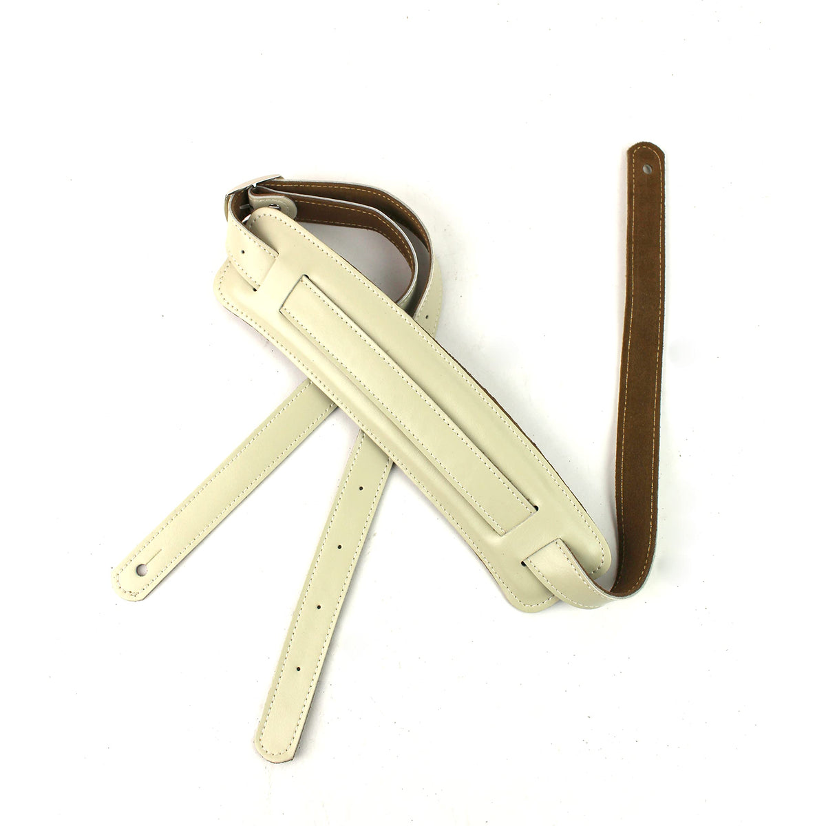 Walker And Williams C 19 Wht Aged White Premium Soft Grain Leather Vintage Slash Guitar Strap With Deluxe Suede Backed Pad Extra