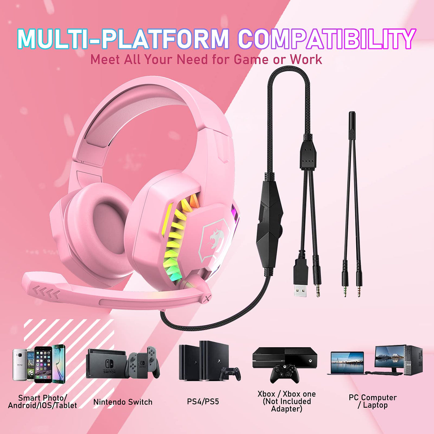 Headphone Specification: Connection Method: Wired By The Attached Cable Speaker Size: 40Mm Sensitivity: 1103Db Frequency Range: 20 Hz-20Khz Microphone: 6.0X 5.0Mm Microphone Sensitivity: -383Db Backlight: Multi Color Auto Changing Rgb Backlight(Plug/Unplug The Usb Cable To Turn On/Off Backlight) Volume Control Box Is On The Cable Adjustable Microphone(About 120) Compatible System: Support 32-Bit And 64-Bit Win7/Win8/Win8.1/Win10/Xp Features •High-Resolution Stereo Sound Offers The Extra Bass And Crisp Treble Performance Without Distortion. •The Self-Adjusting Lightweight Head Beam With Soft Top Cushion Offers A Comfortable Fit For Head Of Different Size. •Large Ear Pads Which Is Made Of Premier Soft Memory Protein Cotton Can Ensure A Long Time Comfortable Wearing Experience. •120Adjustable Microphone Can Be Easily Adjusted For Better Storage, And Is Capable Of Noise Reduction Function, Can Catch Up And Deliver Your Sound Clearly To Your Friend. •3.5Mm Audio Jack Can Work With Most Device Like Ps3/Ps4/Ps5/Xbox/Switch Game Console, 1 To 2 Splitter Cable Can Be Used For Pc Laptop Which Has Audio Jack And Headphone Jack. •Rainbow Rgb Backlight Can Add More Interesting And Fancy Atmosphere When Dancing With Music Or Playing Games. Package List: 1*Wired Gaming Headset With 1 To 2 Splitter 1*User Manual