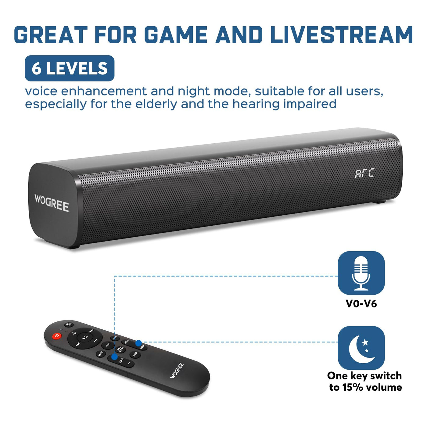 2.1Ch Sound Bar For Smart Tv With 6 Levels Voice Enhancement, Built-In Subwoofer, 16 Inches Bluetooth 5.3 Tv Soundbar Speakers W