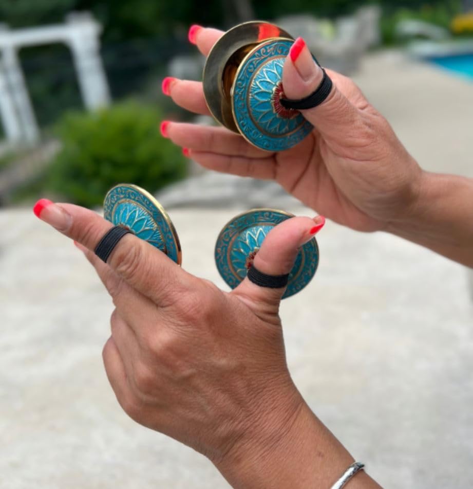Two Pair Of Professional Quality Zills, Four Pieces In Total. This Zills Is Hand Crafted In India By Master Craftsman , They Are Grade Zills With Great Sound. A Quintessential Piece Of Equipment For The Middle Eastern Belly Dancer, The Finger Cymbals, Or Zills As They Are Frequently Called, Provide Both An Upbeat Sound And A Method For The Dancer To Set And Change The Rhythm Of The Dance. These Small One-Hole Zills Are Both Functional, With A Clear Sweet Tone, And Decorative, Cast In A Floral Ornate Design Over The Entire Surface. They Are Measuring 2.25 Inches Across, And With An Expandable Elastic Finger Loop To Accommodate A Variety Of Finger Shapes And Sizes.