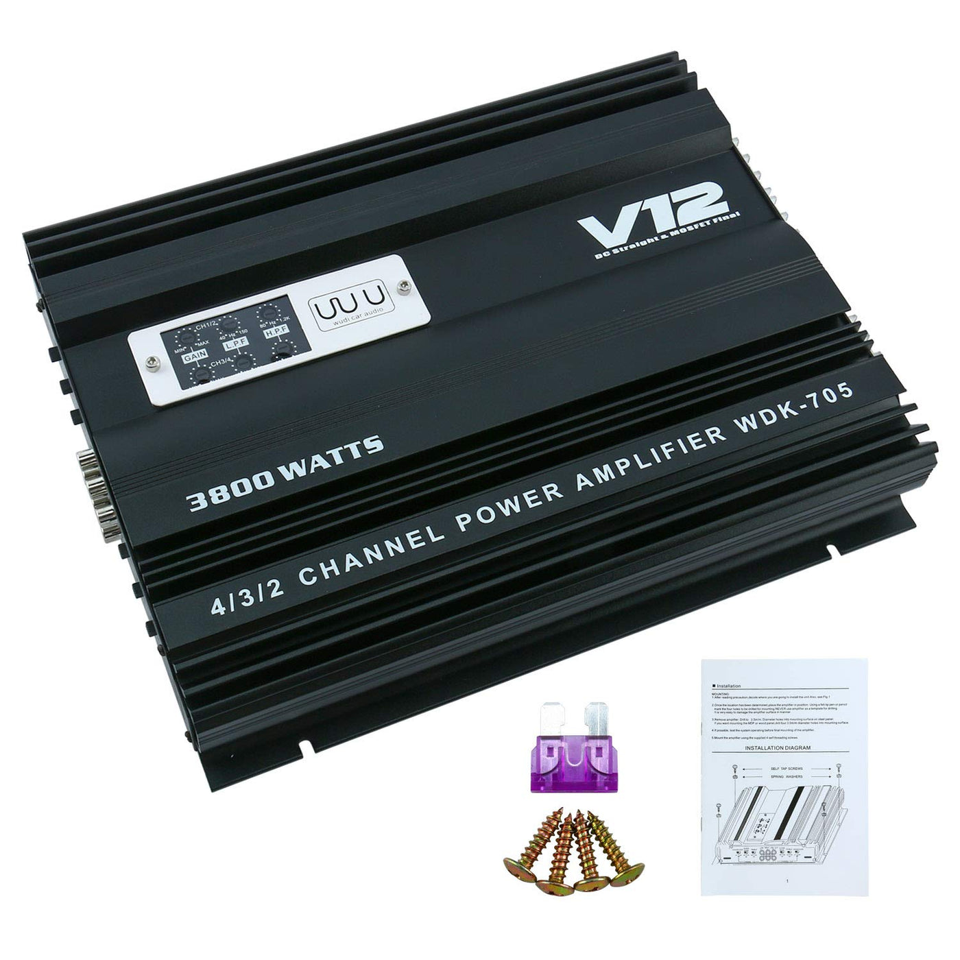 Package Includes: 1 X 4 Channel Car Amplifier 4 X Screws 1 X English User Manual