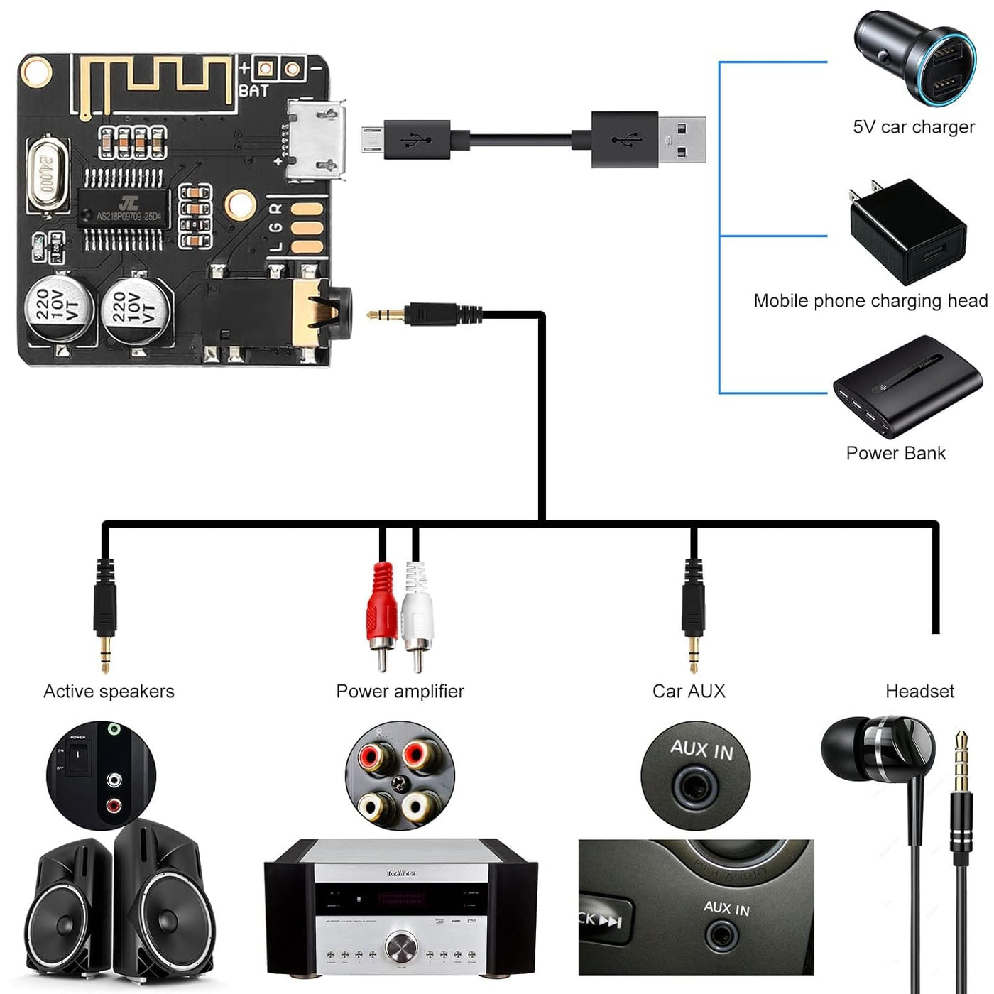5Pcs Bluetooth Audio Receiver Board Bt 5.0 Stereo Audio Amplifier 3.7 5V Car Speaker Amplifier For Diy
