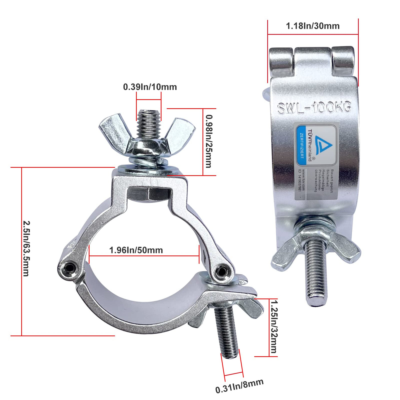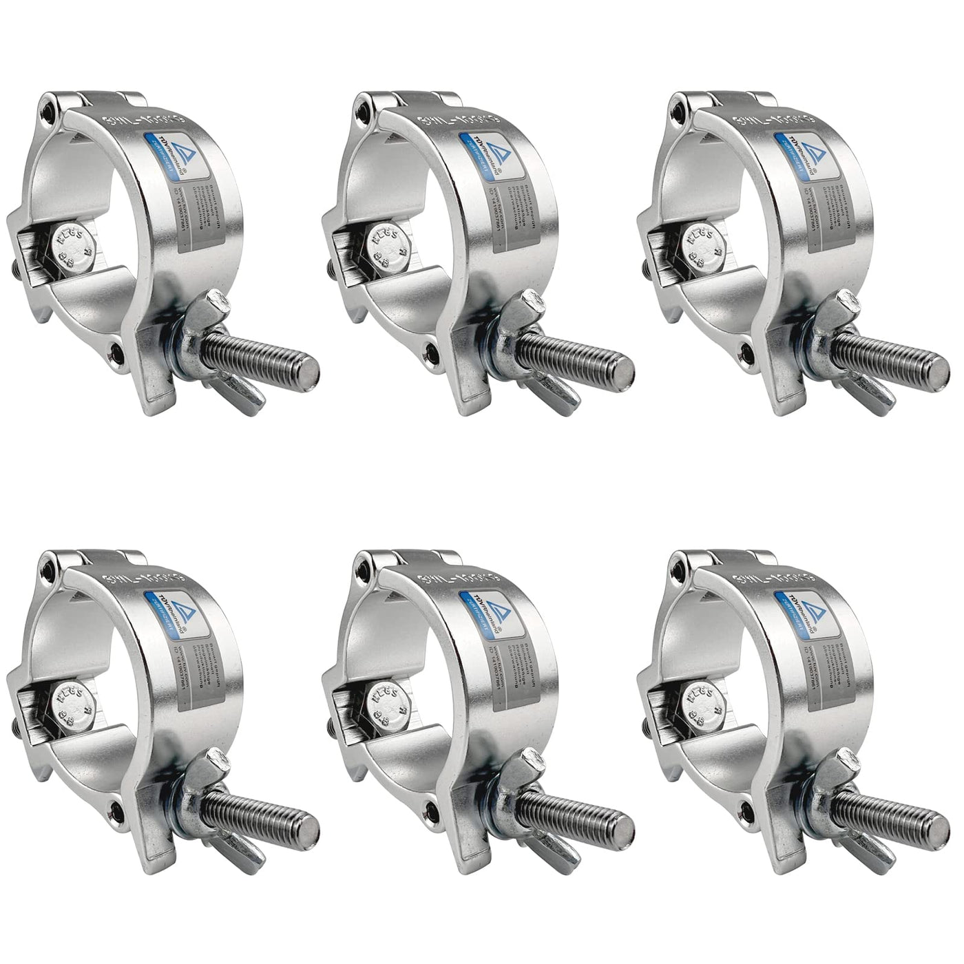 Jinwokeji 6 Pack O-Clamp Stage Lights Truss Clamp, 2 Inch Aluminum Light Clamps, Led Par Dj Spots Lights Moving Head Beam Spot Clamps, Fit For 48-51Mm(188-20) Od Tubepipe, Heavy Duty 220Lbs, Tuv Certificated Material:Aluminum Alloy 6061 Surface Treatment Sandblasting Oxidation Threaded Bolt: 9 Mm Gross Weight: 529 Ounces150G Size: 433A303A174 Inch (11*77*442Cm) Color:Silverblack Button Type: Open Single Button Max Load Capacity:220Lbs100Kg Fit Truss Size:Fits Truss Or Pipe: 2 Inch48-51Mm In Diameter Package Included:A6 X Lighting Truss Clamps Warm Tips: Thanks For Purchasing Aluminum Lighting Truss Clamps, Please Do A Max Load Capacity Test Before Use