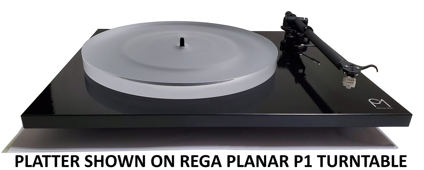 Q: Is the acrylic platter compatible with my turntable model?A: This acrylic platter is designed to fit Rega Planar 1/2/3, RP1, RP3, P1, P2, P3, P3-24, and NAD 533 turntables. It's important to check the dimensions to ensure a proper fit.