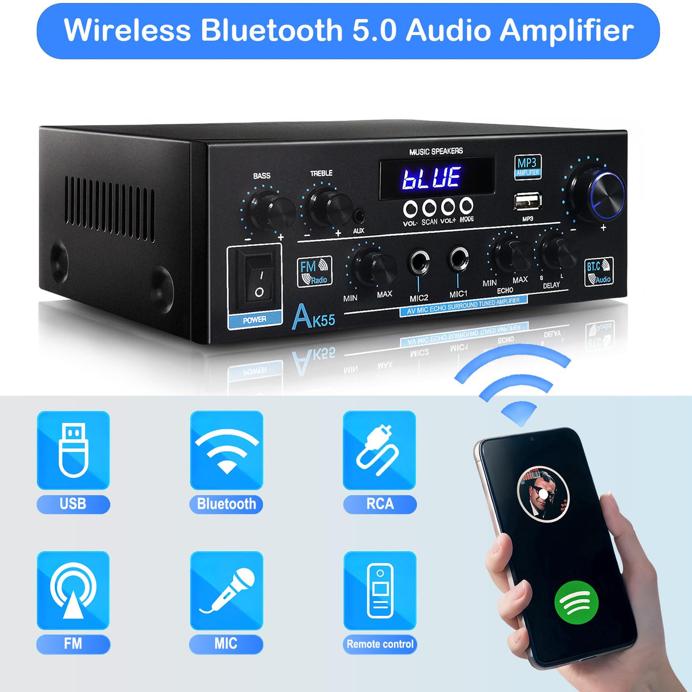 Ak55 Amplifier Home Audio Stereo Receiver With Bluetooth 5.0 Rated Power 70W X2 Mini Amp 2.0 Channel Hifi Stereo Amplifier For H