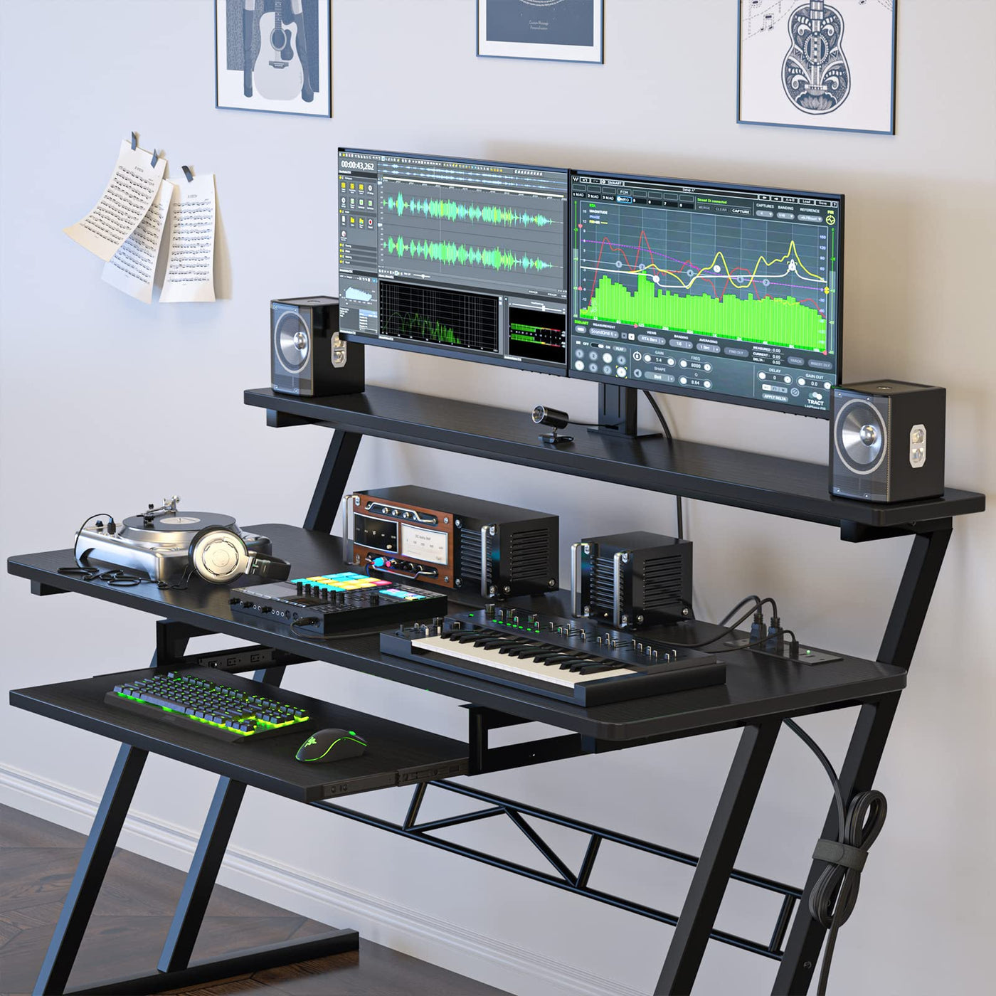Armocity 47'' Music Studio Desk With Power Outlet, Studio Desk For Music Production, Recording Studio Desk For Producer, Studio