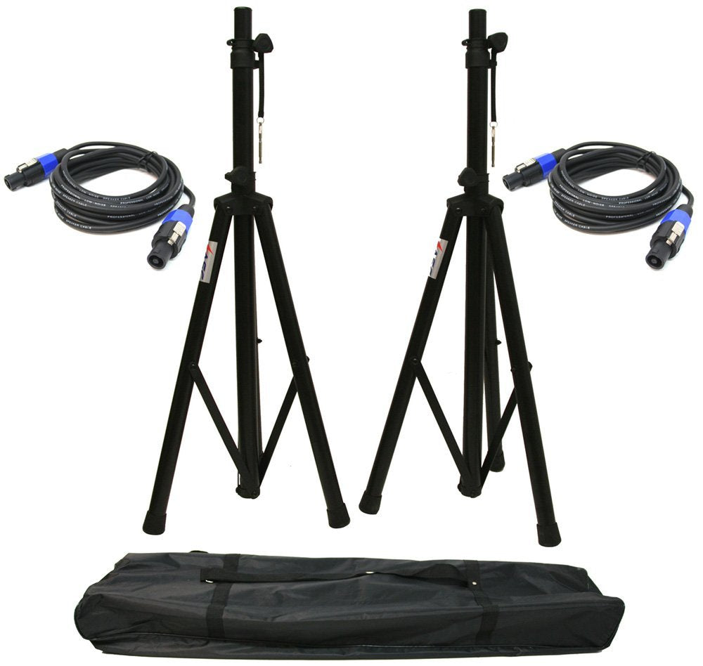Asc-S018(With Cable) Package Includes: 2 X Speaker Stands Telescopes From 4 To 6 Foot Max Height Tube Diameter: 35Mm (1375) Loading Capacity: 110 Lbs Per Stand Constructed With Strong But Lightweight Iron Safety Pin For Maximum Strength And Security 2 X Speakon Male To Speakon Male 15 Foot Cables Speakon Male To Speakon Male Cable Constructed From High Quality 12 Gauge Wire Black Cable Jacket Blends In With Equipment Flexible Design Eliminates Kinks And Twists High Quality Superior Audio Signal, Eliminates Hums, Buzzing And Crackles Spring Loaded Locking Ends 1 X Speaker Tripod Dual Stand Bag High Quality Nylon Material Made For The Road Includes Shoulder Strap