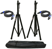 Asc (2) Pro Audio Mobile Dj Pa Speaker Stands 6 Foot Adjustable Height Tripod With (2) Speakon 15Ft Cables & Nylon Travel Bag