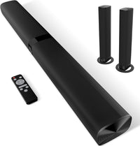 Sound Bar Technical Data: Sound Output: 60W Input: 100 - 240 V~, 50/60 Hz Frequency Response: 90 Hz - 20 Khz Signal To Noise Ratio: 65 Db Bluetooth Version: 5.0 Note Of Importance - Please Be Sure To Read No Subwoofer Included - No Connector To Hook Up A Subwoofer Focus On People With Limited Budgets -&Nbsp;If You Have Special Needs For Deep Bass, Please Skip This Product Includes 2 Detached Small Soundbars Not 1 Soundbar + 2 Speakers - Ensure You Have Considered It Before Purchasing If You Find Sound Effect Not As Expected, You May Missed Sound Setting - Just Contact For Tech Support, We Will Help Within 24 Hours Wireless Means Bluetooth Connection, It Still Need To Plug Into Power Adapter
