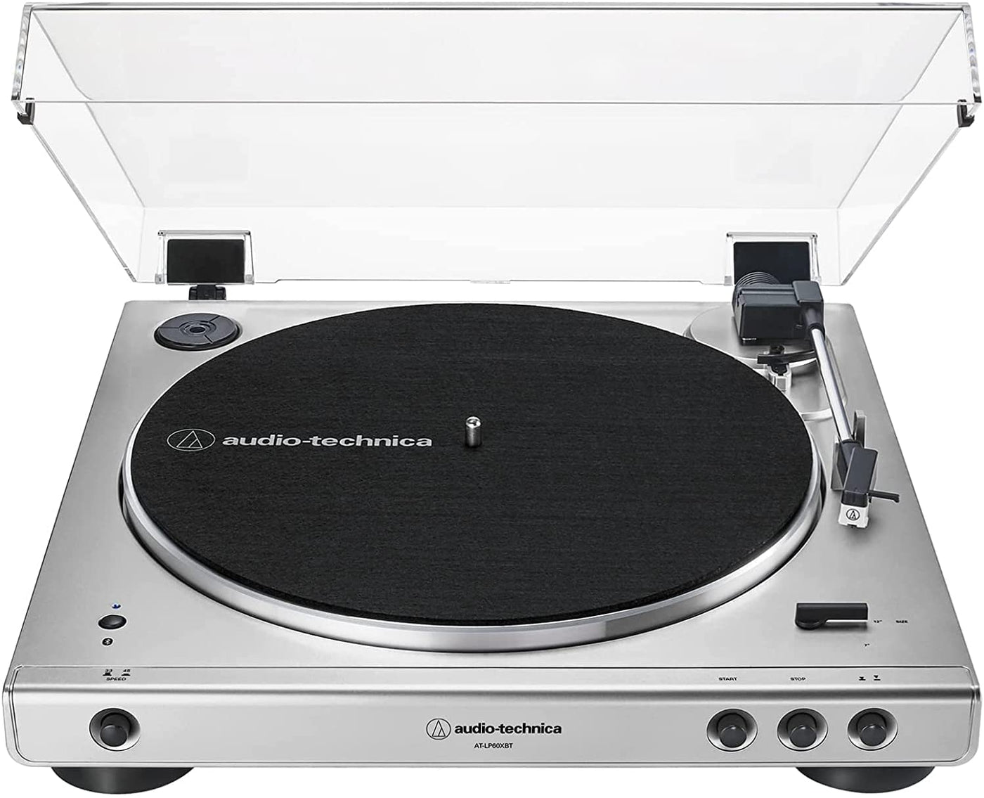 Audio-Technica At-Lp60Xbt-Sv Fully Automatic Bluetooth Belt-Drive Stereo Turntable, Silver, Hi-Fi, 2 Speed, Dust Cover, Anti-Res