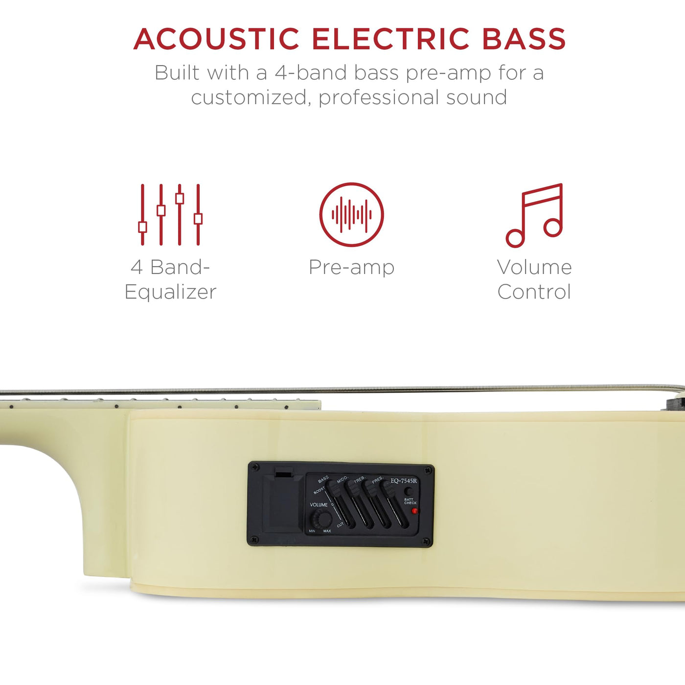 Best Choice Products Acoustic Electric Bass Guitar, Full Size 4 String, Fretted Bass Guitar W/Padded Gig Bag Cream White