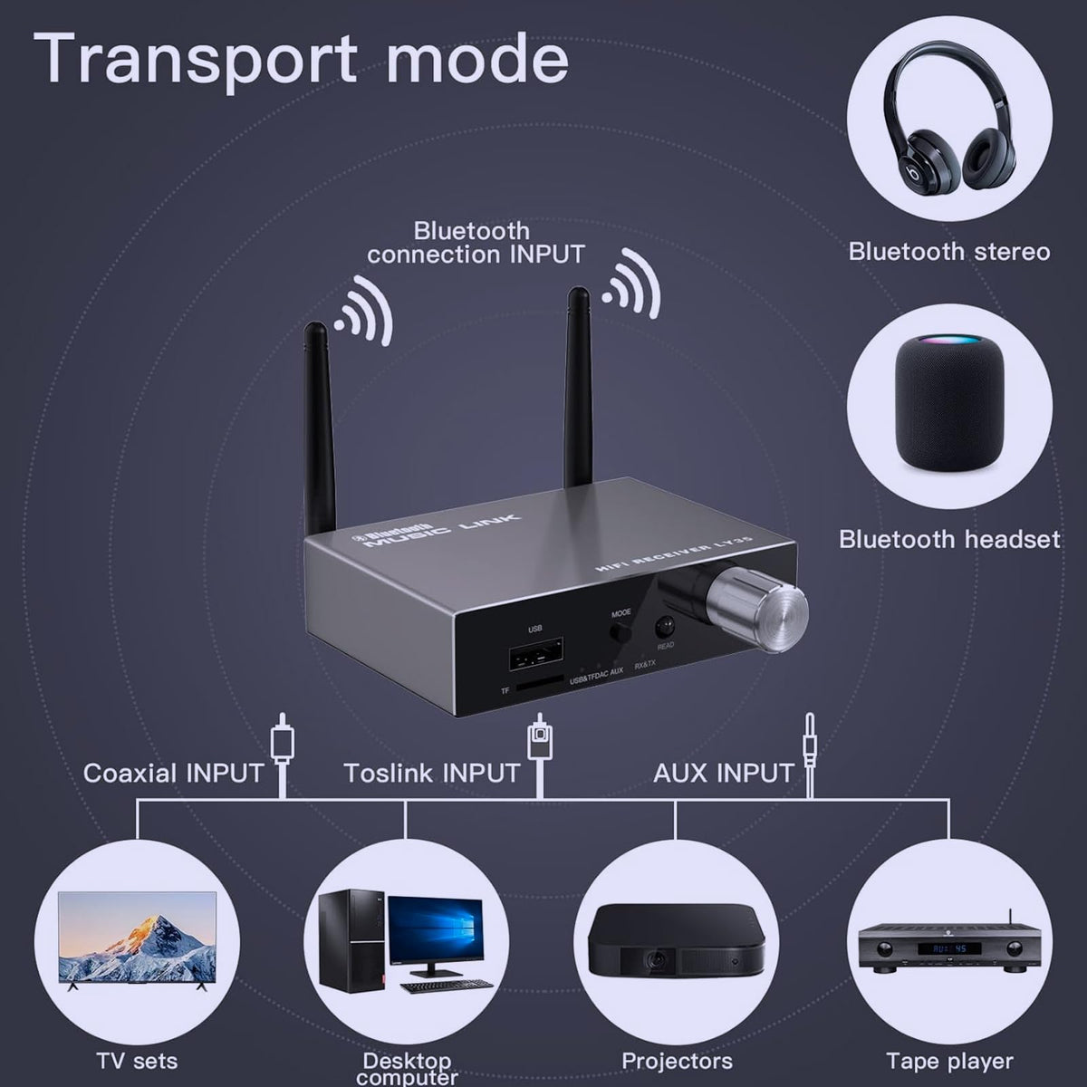 Bluetooth 5.3 Receiver For Home Stereo,2 In 1 Bluetooth Audio Adapter And Coaxial Audio Adapter Function 30M Long Distance Low Latency For Tv/Cd/Mp3 Ect