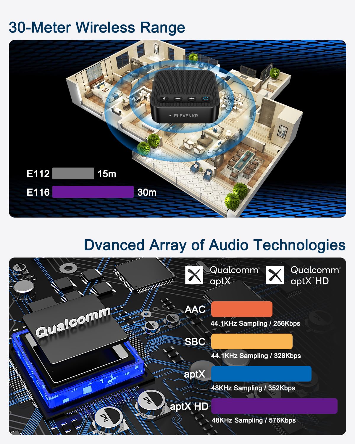 Bluetooth Audio Receiver: Enjoy A New Wireless Music Experience In Today'S Era Of Rapid Technological Advancements, The Bluetooth Receiver Has Brought Great Convenience And A High-Quality Listening Experience To Our Musical Lives. This Bluetooth Audio Receiver Is Specially Designed For Stereo Receivers, Making It An Excellent Bluetooth Adapter For Stereo Receivers And Other Sound Systems. It Can Connect To Powered Speakers, Home Stereos, Or Other Sound Systems Via A 3.5Mm/Rca Audio Cable, Transforming Ordinary Sound Systems Into Bluetooth-Enabled Devices. Whether You?E Using It As A Bluetooth Adapter For Old Receivers Or A Bluetooth Receiver For Home Stereo, It Enables You To Convert Wired Speakers To Wireless And Enjoy A Musical Feast. Equipped With A Low-Power Bluetooth Audio Soc, This Bluetooth Audio Adapter Supports Qualcomm Aptx Audio And Aptx Hd Audio Technology, Ensuring Continuous High-Quality Audio Streaming Via Bluetooth. This Makes It Ideal For Users Looking For A Bluetooth Stereo Adapter With Excellent Sound Quality. One Of The Standout Features Is Its Intelligent One-To-Two Function, Which Allows This Bluetooth Receiver For Speakers To Connect To Two Devices Simultaneously, Such As Smartphones Or Tablets, Enabling Seamless Music Switching. However, Only One Device? Audio Can Play At A Time. With Its Built-In Bluetooth Antenna And Signal Gain Amplifier, This Rca Bluetooth Adapter Provides A Wireless Range Of 80 To 100 Feet (About 30 Meters) Indoors Without Obstructions, Making It A Great Wireless Audio Receiver And Adapter. Important Note It'S Essential To Note That This Device Is Only A Bluetooth Audio Receiver, Not A Transmitter. It Is Designed To Add Bluetooth Capabilities To Powered Speakers, Old Home Stereo Systems, And Av Receivers. For Example, This Rca To Bluetooth Transmitter Or Bluetooth Rca Adapter Cannot Transmit Audio From Devices Like Turntables But Works Perfectly As A Bluetooth Transmitter For Home Stereo Or A Bluetooth Adapter For Speakers. This Device Is Powered By An Ac Adapter Or Usb Cable, As It Does Not Include A Built-In Battery. Whether You'Re Using It As A Bluetooth Adaptor For Old Stereos Or A Bluetooth Transmitter For Turntables, It Is A Reliable Choice To Enhance Your Setup. Convenience And Ease Of Use The Setup Process Is Simple And User-Friendly. Once Powered On, The Bluetooth To Rca Adapter Will Automatically Enter Pairing Mode. After A Successful Connection, It Can Reconnect To Previously Paired Devices Automatically. When Connecting A New Device, Just Press And Hold The Bluetooth Button For 2 Seconds To Enter Pairing Mode. This Makes It A Perfect Bluetooth Adapter For Home Stereos Or A Bluetooth Receiver For Aux Input. Reliable Customer Support We Offer A Two-Year Service Guarantee For This Bluetooth Receiver. Whether You Need Support With A Bluetooth To 3.5Mm Audio Adapter, Rca To Bluetooth, Or Any Other Functionality, We Provide Timely Assistance And Fast Replacements. This Bluetooth Adapter Is Ideal For Upgrading Old Systems. Whether You'Re Looking For A Stereo Bluetooth Adapter Or A Reliable Blue Tooth Adapter For Stereo Receivers, This Device Will Meet Your Needs And Transform Your Home Audio Experience.
