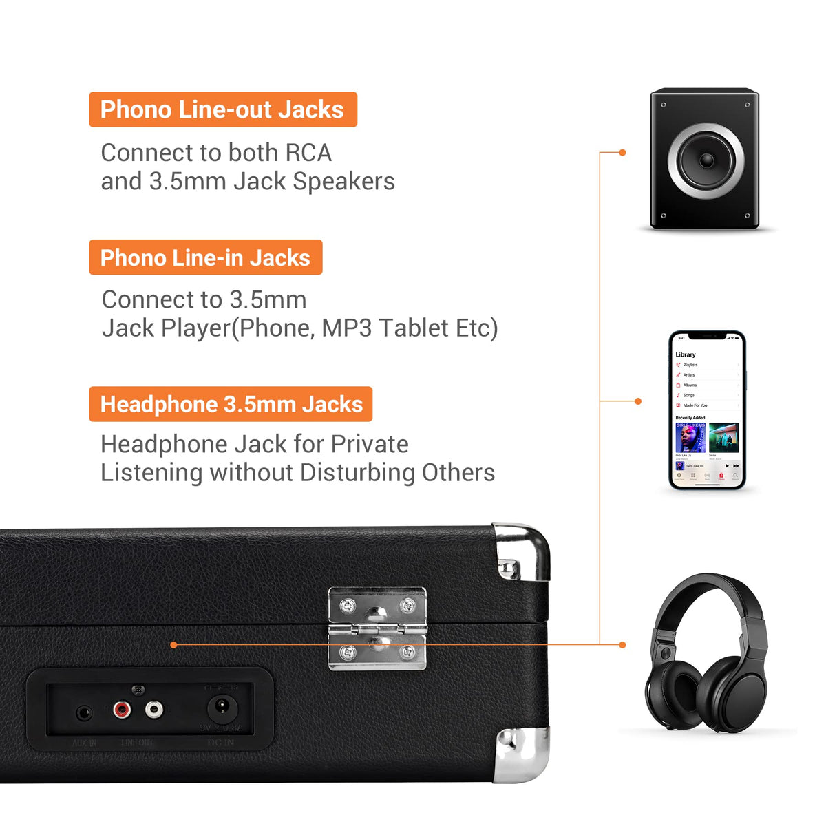 Byronstatics Record Player, Vinyl Turntable Record Player 3 Speed With Built In Stereo Speakers, Replacement Needle, Supports Rc